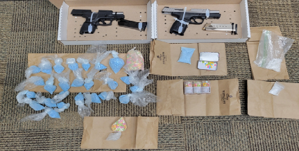 ORIGINAL: On April 4, 2023, the Salina Police Department SWAT team, the Salina Police Department Detective Division and Agents from the Kansas Bureau of Investigation served a search warrant at 827 Mike Drive in Salina regarding a drug investigation involving the distribution of fentanyl pills. During the search over five thousand pills, over half an ounce of suspected methamphetamine, two handguns, 9mm ammunition, and suspected stolen property was seized. The pills are commonly recognized to be counterfeit oxycodone pills containing suspected fentanyl.