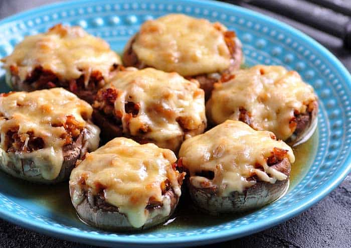 - Cook for 10 minutes. Sprinkle shredded cheese on top of each mushroom. Cook for a further 1-2 minutes and serve.