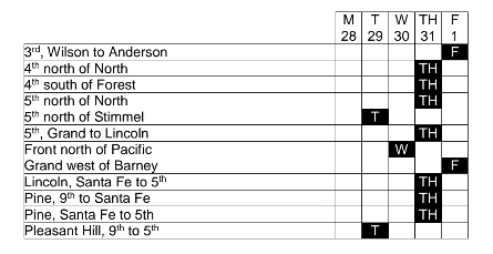 City of Salinaโs annual chip seal project. The schedule is as follows,