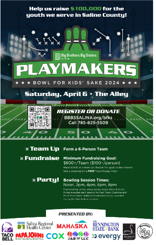 Big Brothers Big Sisters of Salina is excited to announce its upcoming Bowl For Kids’ Sake fundraiser, set to take place on Saturday, April 6th at The Alley of Salina. This annual event, known for its camaraderie and community engagement, aims to raise $100,000 to support mentoring programs for local youth.