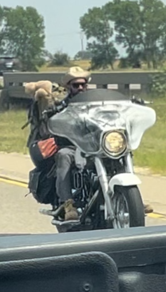 Authorities are chasing a motorcyclist. A Saline County resident, who was overtaken by the motorcyclist, reported, "We noticed law enforcement blocking the exit ramps, which seemed weird. Then I saw a line of lights coming up behind us... he didn't seem too alarmed."