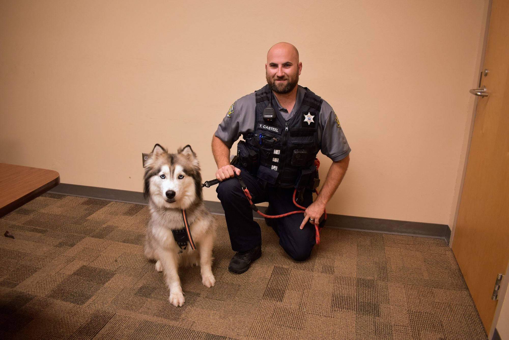 Across the County at Ell-Saline, Deputy Tyler Casteel is the dedicated handler of Jax, a charming Alaskan Malamute/Husky mix. At 3 years old, Jax brings a sense of maturity to his role. Deputy Casteel has been a member of the Saline County Sheriff Office since May 2019 and transitioned into the position of Resource Officer at Ell-Saline in 2021. In December 2022, Jax joined Deputy Casteel in his duties as a school resource officer.