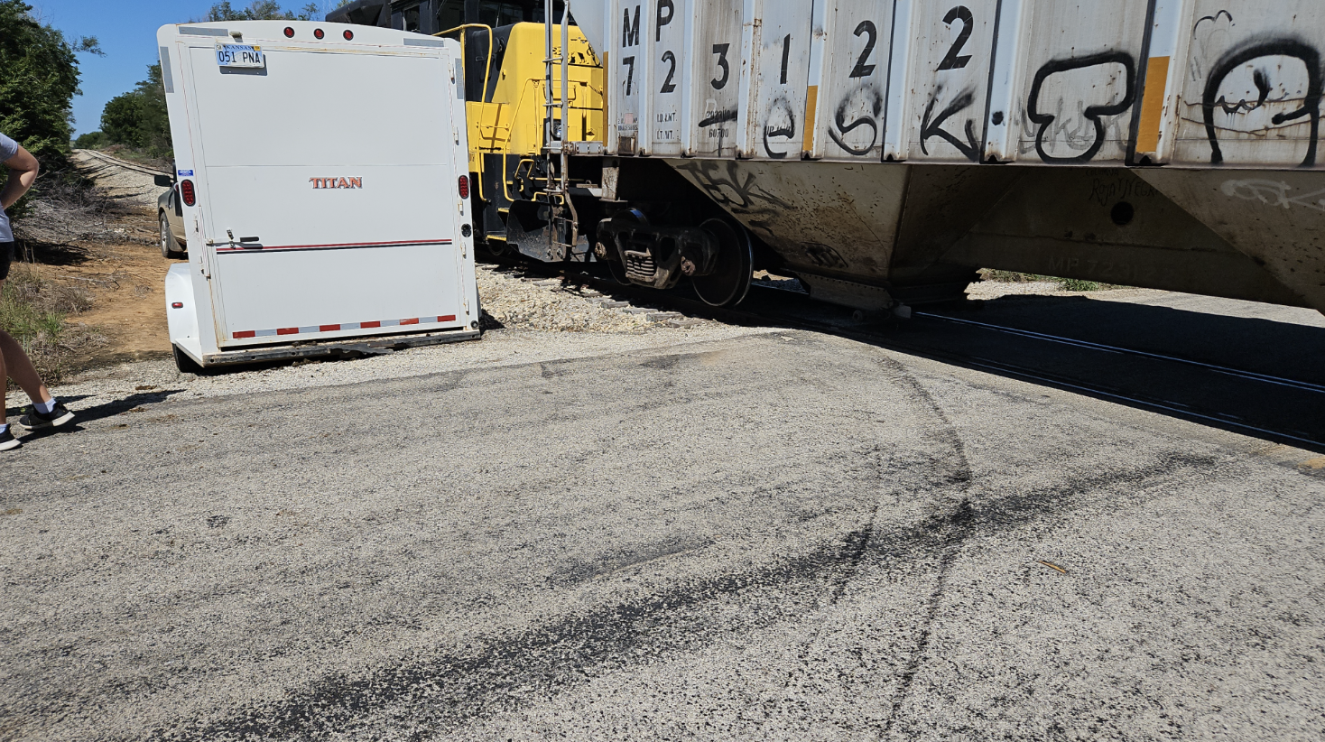 On Saturday, August 17, 2024, at approximately 11:17 am, a silver 2010 Dodge Ram collided with a slow-moving K&O Railroad train at a crossing on Brookville Road, south of Watkins Road. The truck, driven by 44-year-old Levi Taylor of Salina, was pulling a horse trailer when it attempted to cross the tracks.