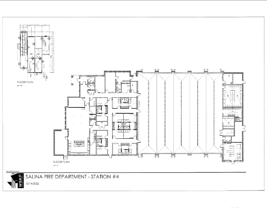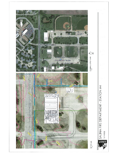 City staff met with the Salina Fire Department and WSKF Architects in December 2022 to discuss the rezoning, platting, and development of the proposed fire station. The proposed fire station building is irregular in shape and spans approximately 20,147 sq. ft., in stark contrast to the existing Fire Station No. 4, which covers 3,908 sq. ft. and houses three fire truck bays.