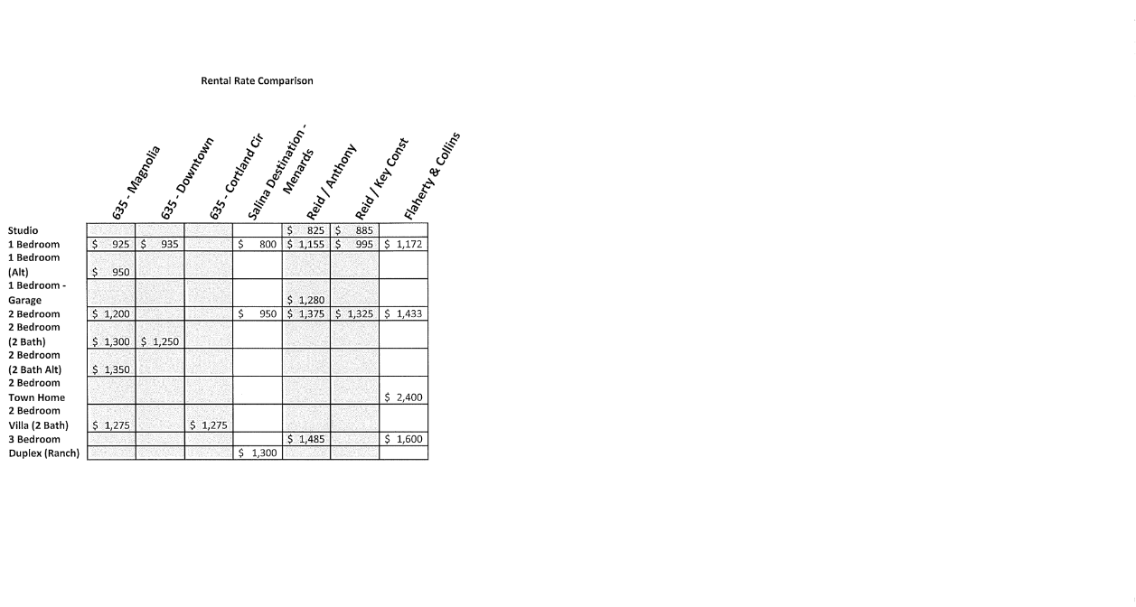 - Provide rents that are supportable in the Salina market and affordable to the target market, specifically new employees to serve the expansion needs of industries located in the City