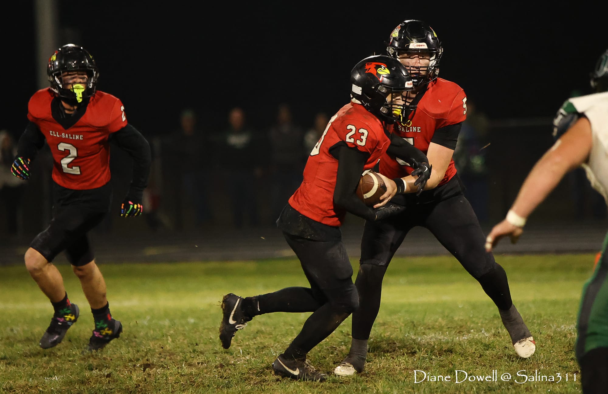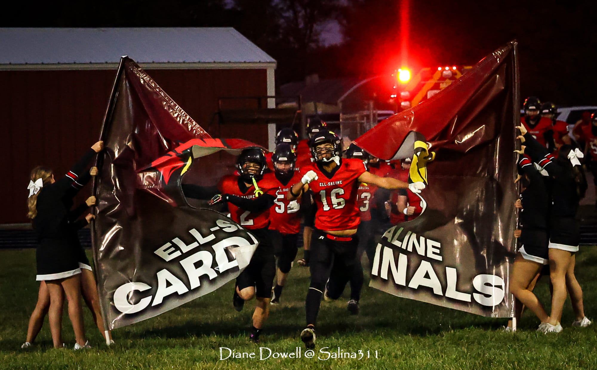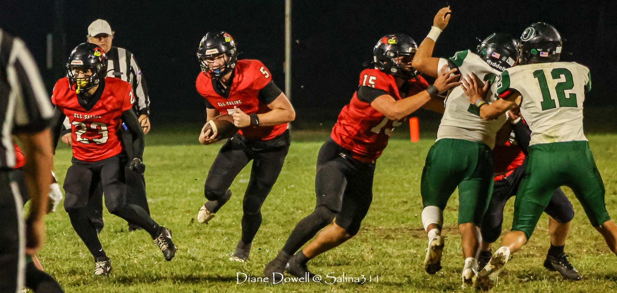 Brookville, KS- October 24, 2025, marked the final regular season game before district playoffs begin next week. The Central Plains Oilers with a 5-2 record traveled to Brookville for Ell-Saline's Sr. Night recognition game. The Cardinals entered the night with a 6-1 record. The Friday Night Lights were on, and the fans pulled out their umbrellas and bundled up for a soggy night of football.