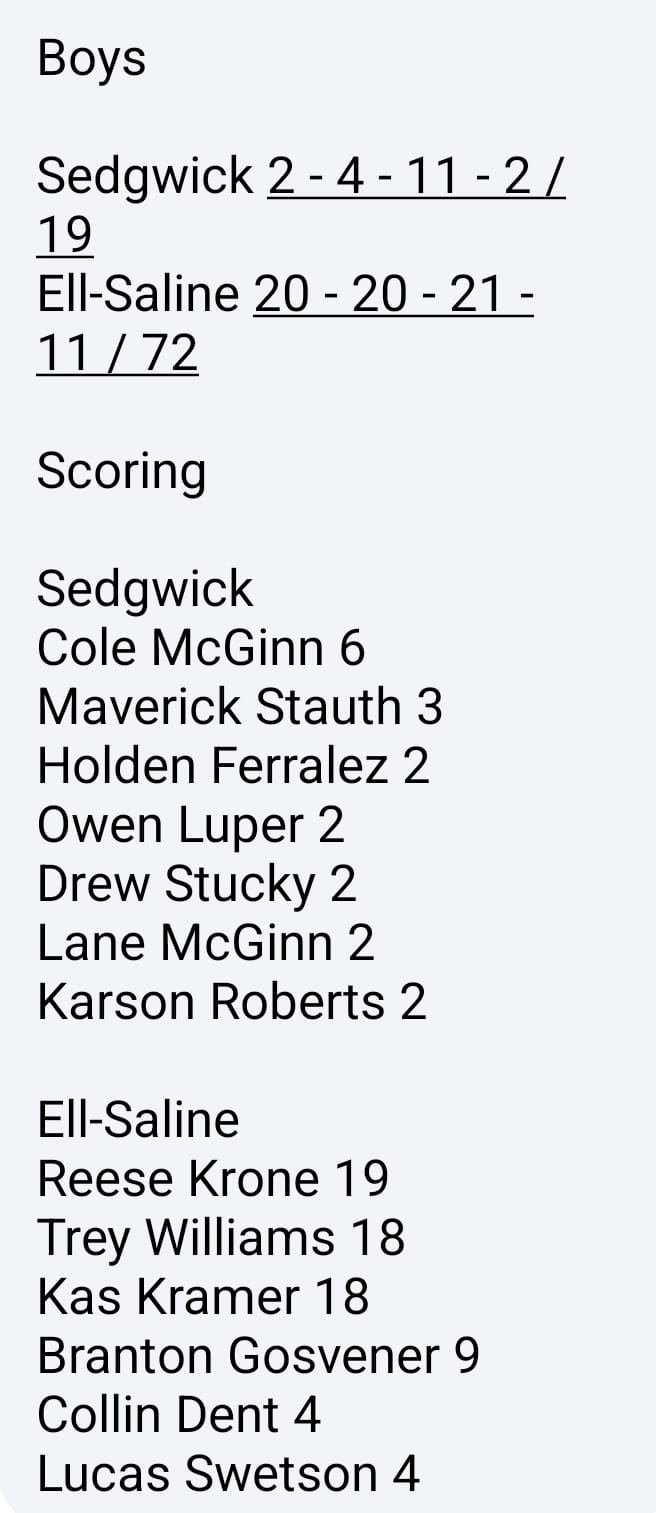 Ell-Saline wins over Sedgwick 72-19.