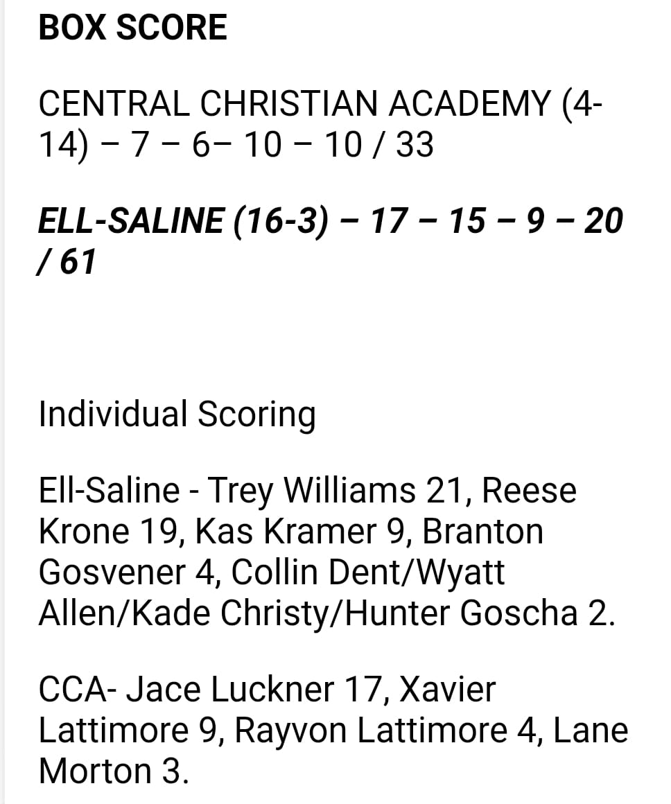 Mission accomplished. Ell-Saline wins over Wichita Central Christian on Feb 13, 2026