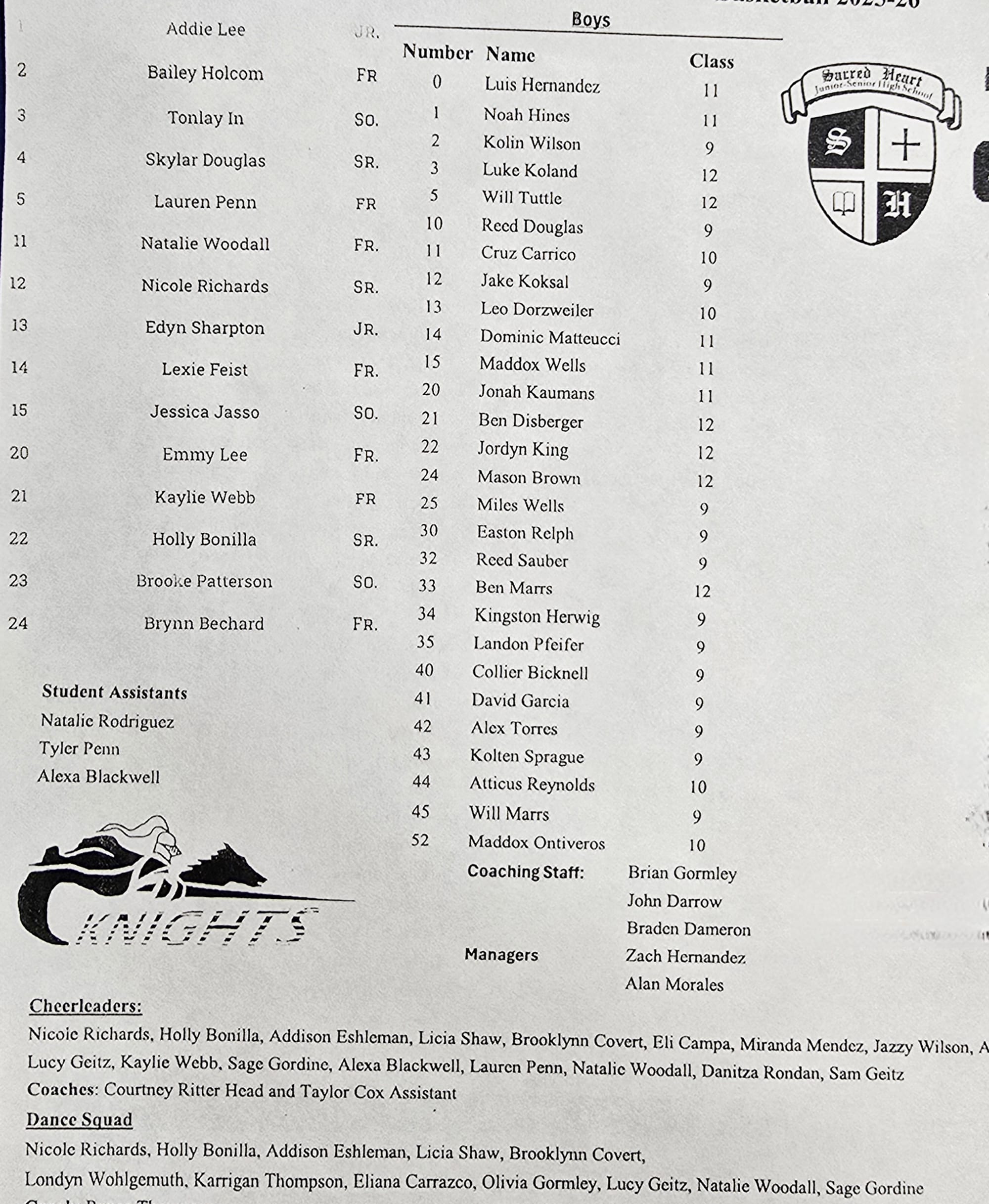 December 19, 2025, was an exciting night on the hardwood, as Sacred Heart and Lyons fought until the final buzzer. Tonight's game concludes the Knights games until after Christmas Break.