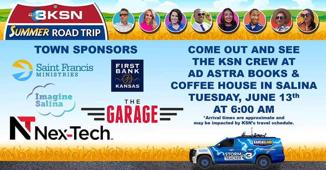 Here's what's going on in Salina today! Find more at Salina311 Events Calendar.https://facebook.com/events/s/ksn-summer-road-trip-salina-co/156779470712574/https://facebook.com/events/s/ksn-summer-road-trip-salina-co/156779470712574/https://facebook.com/events/s/06132023-100pm-chicken/915124662914088/https://facebook.com/events/s/sayp-book-discussion/972202973907139/
