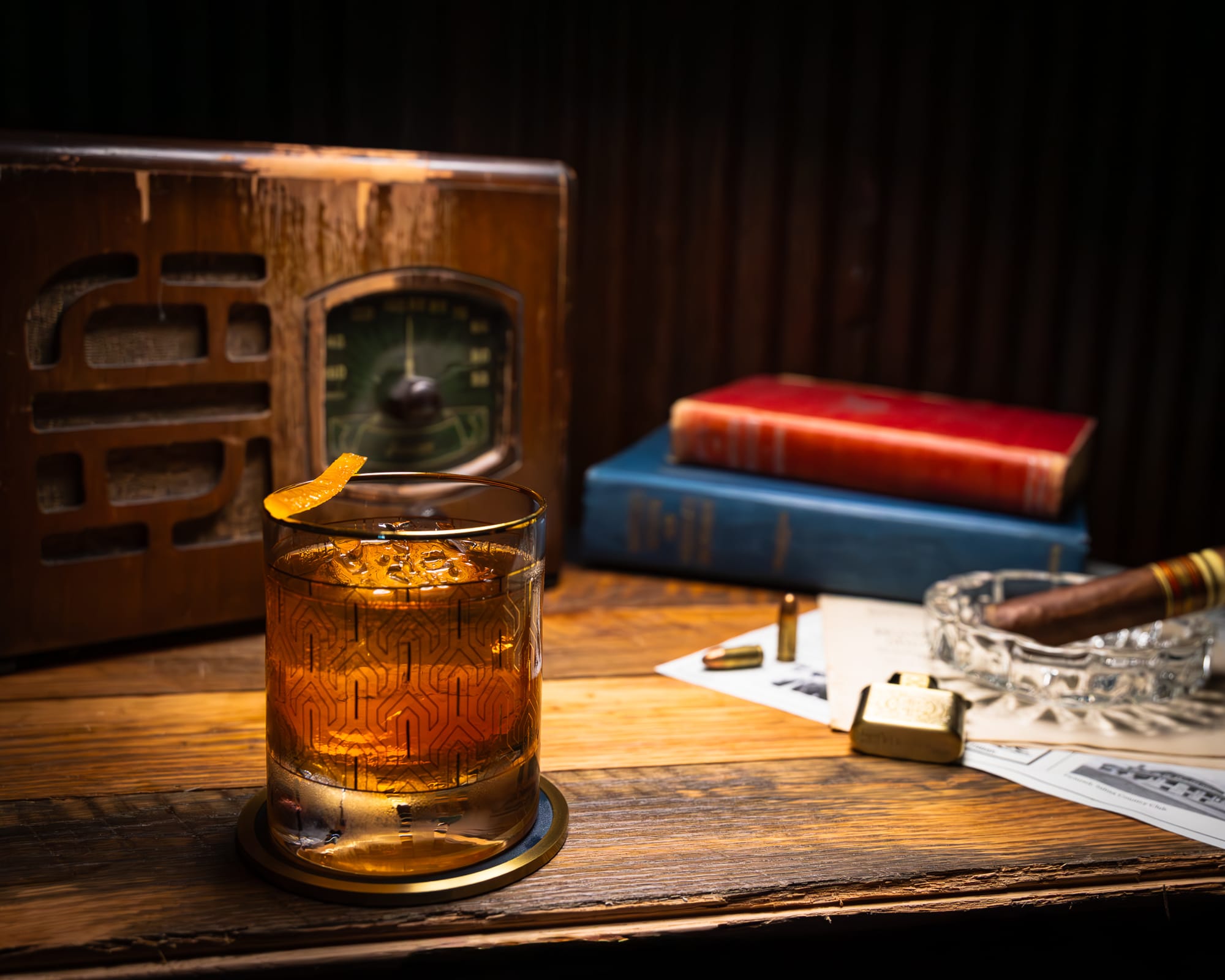 A pig incorporated into the M1918 logo nods to the “blind pig” slang used for secret drinking establishments during the 1920s. Together, the name and imagery create a brand steeped in historical reference and quiet rebellion — fitting for a hidden bar that asks guests to enter through a coded door.