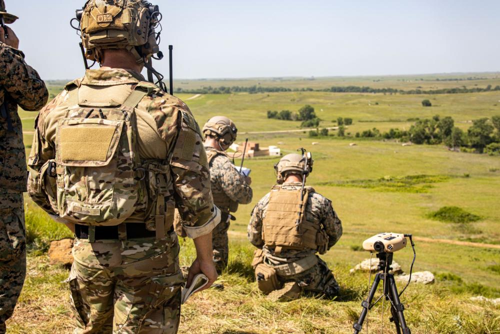 A U.S. Marine looks out at an air weapons testing site at Smoky Hill Air National Guard Range during exercise Gunslinger 22 at Salina, Kansas on June 20, 2022.Exercise Gunslinger 22 is a joint exercise with the Kansas Air National Guard and U.S. Marine Corps designed to increase aircraft control and training for potential real world contingencies. (U.S. Air Force photo by Senior Airman Chad M. Dixon)U.S Marine Corps Lt. Gen. David Bellon, Commander of Marine Forces Reserve and Marine Forces South talks to Marines with 2nd Battalion, 24th Marine Regiment, Fox Co., 4th Marine Division at Salina, Kansas on June 22, 2022. Exercise Gunslinger 22 is a joint Kansas Air National Guard and U.S. Marine Corps exercise designed to increase joint aircraft control and training for potential real world contingencies. (U.S. Marine Corps photo by Cpl. Ryan Schmid)A U.S. Marine with Marine Heavy Helicopter Squadron (HMH) 772, 4th Marine Aircraft Wing, observes the arrival of a CH-53E Super Stallion during exercise Gunslinger 22 at Salina, Kansas on June 20, 2022. Exercise Gunslinger 22 is a joint exercise with the Kansas Air National Guard and U.S. Marine Corps designed to increase aircraft control and training for potential real world contingencies. (U.S. Marine Corps photo by Lance Cpl. David Intriago)U.S. Marines with All-Domain Effects Team, 2nd Air Naval Gunfire Liaison Company, II Marine Expeditionary Force Information Group, calls for fire support during Exercise Gunslinger 2022 in Salina, Kansas, June 17, 2022. The ADET provides and synchronizes lethal and non-lethal effects across all domains with a combination of sensors and marksmen that enhance lethality and interoperability with joint and reserve forces of maneuver forces. (U.S. Marine Corps photo by Sgt. Joshua Davis)U.S. Marines with Marine Light Attack Helicopter Squadron (HMLA) 773 Detachment A, 4th Marine Aircraft Wing, conduct maintenance on an AH-1Z Viper during exercise Gunslinger 22 at Salina, Kansas on June 20, 2022. Routine aircraft maintenance is required to ensure the aircraft is operating within optimal flight conditions. (U.S. Marine Corps photo by Cpl. Oscargavino Quintana)