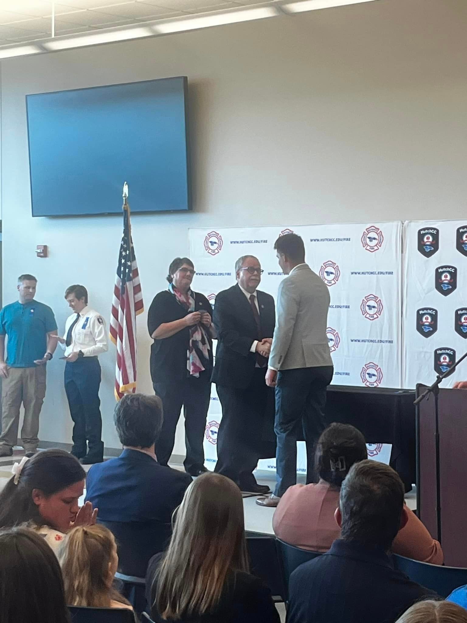 Hutchinson Community College held its pinning ceremony today to recognize the achievements of Dalton Arbuckle, Thomas Ross, Colton Burk, and Kaj Sjogren, who have all successfully completed the program and are now certified paramedics.