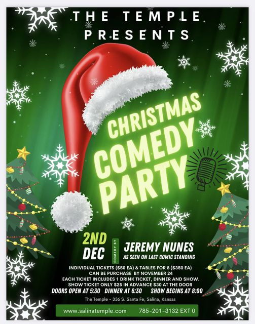 Don't miss out on this opportunity to enjoy great comedy, delicious food, and a memorable holiday evening at The Temple's Christmas Comedy Party. Get your tickets today and make your holiday season extra special.
