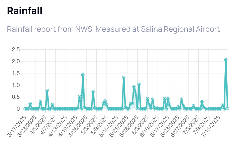 Monday's rainfall of 2.07 inches represents the heaviest single-day precipitation event recorded in Salina since May 19th, when 1.33 inches fell.
