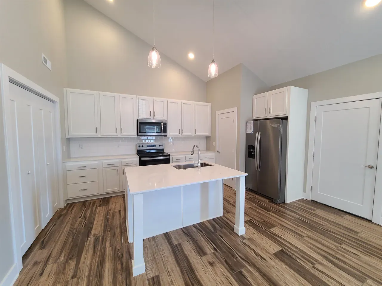 This beautifully designed new construction townhome offers a thoughtfully planned zero-entry floor plan with main-floor living, vaulted ceilings, and an open layout. The home features luxury tile plank flooring, an inviting kitchen with a breakfast bar and island, and stainless-steel appliances. A spacious loft area upstairs adds versatility, while storm shelters in every home provide safety and security.