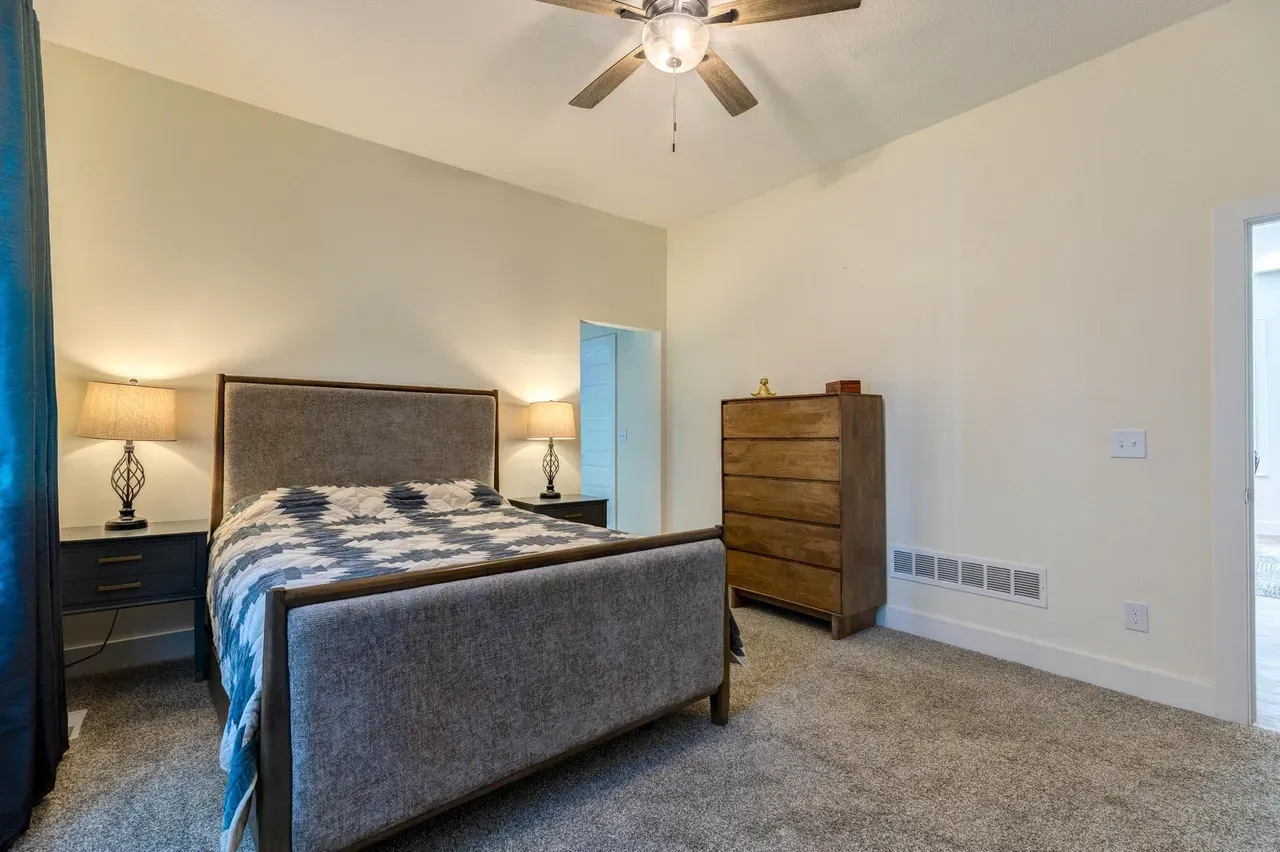 - Outdoor Living: Two decks, wrought-iron front fence, wide recessed driveway, custom carport, and landscaped yard.