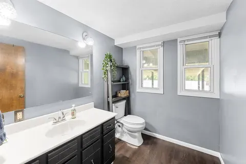 - Primary suite with updated bathroom and a generous walk-in closet for storage and convenience.