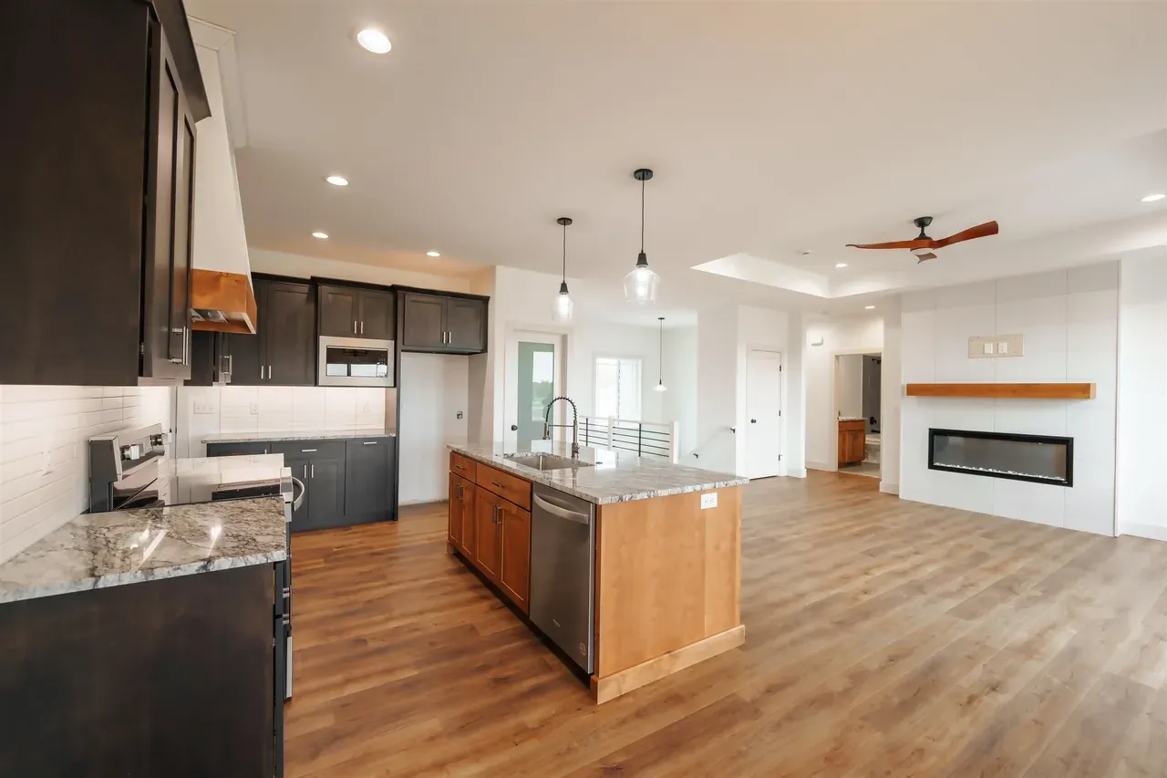 Built by Piercy Homes, this beautiful new construction home offers an open-concept floor plan with modern finishes and thoughtful design. The custom-built kitchen features a stylish hood with white and wood grain detail, a pull-out double trash can cabinet, soft-close doors and drawers, and tip-out trays. The large island comfortably seats four, and the walk-in pantry provides ample storage. Stone countertops are featured in both the kitchen and bathrooms.