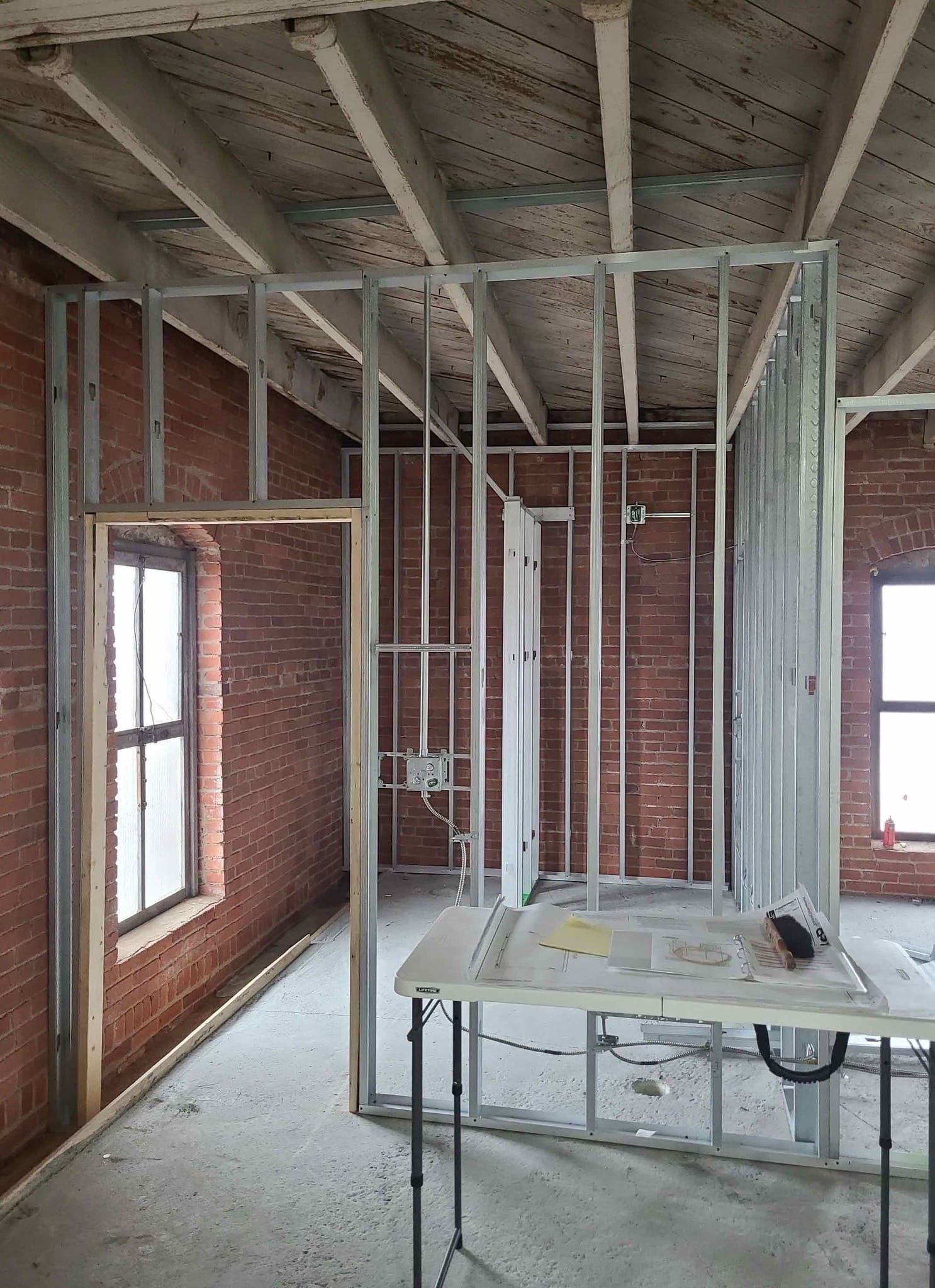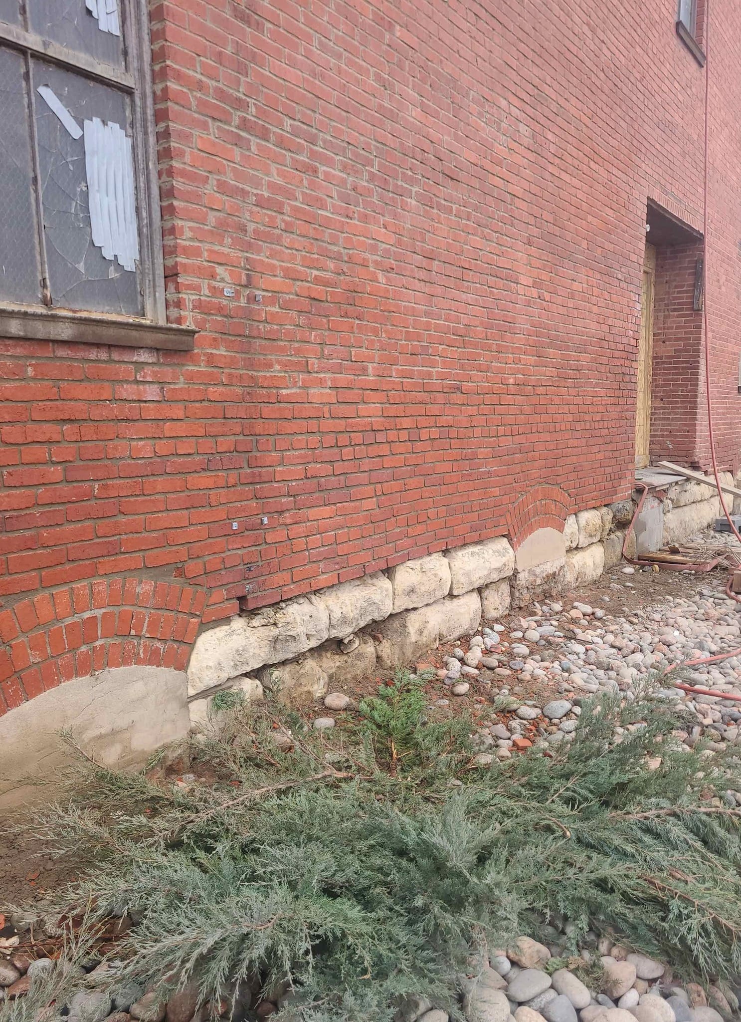 The plumbing contractor is diligently laying out 2nd-floor penetrations, ensuring precision in the construction process. - Masonry Restoration: