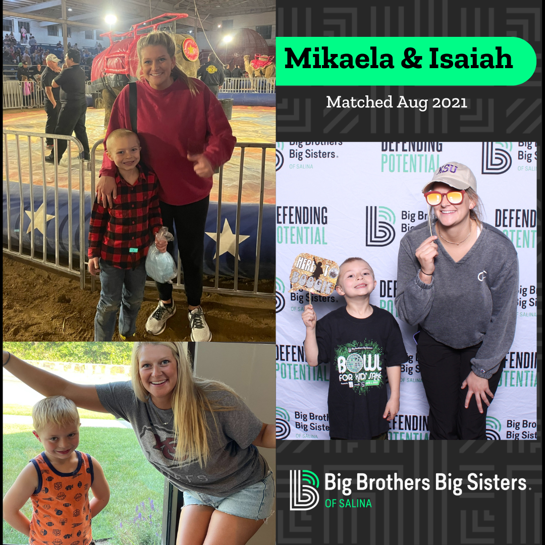 If you are interested in being a mentor and making a positive impact, like Mikaela, apply at www.bbbssalina.org. Currently, over 100 youth in our community are waiting for a mentor. Make a Big difference in the life of a child and our community by being a Big. Call 785-825-5509 for questions.