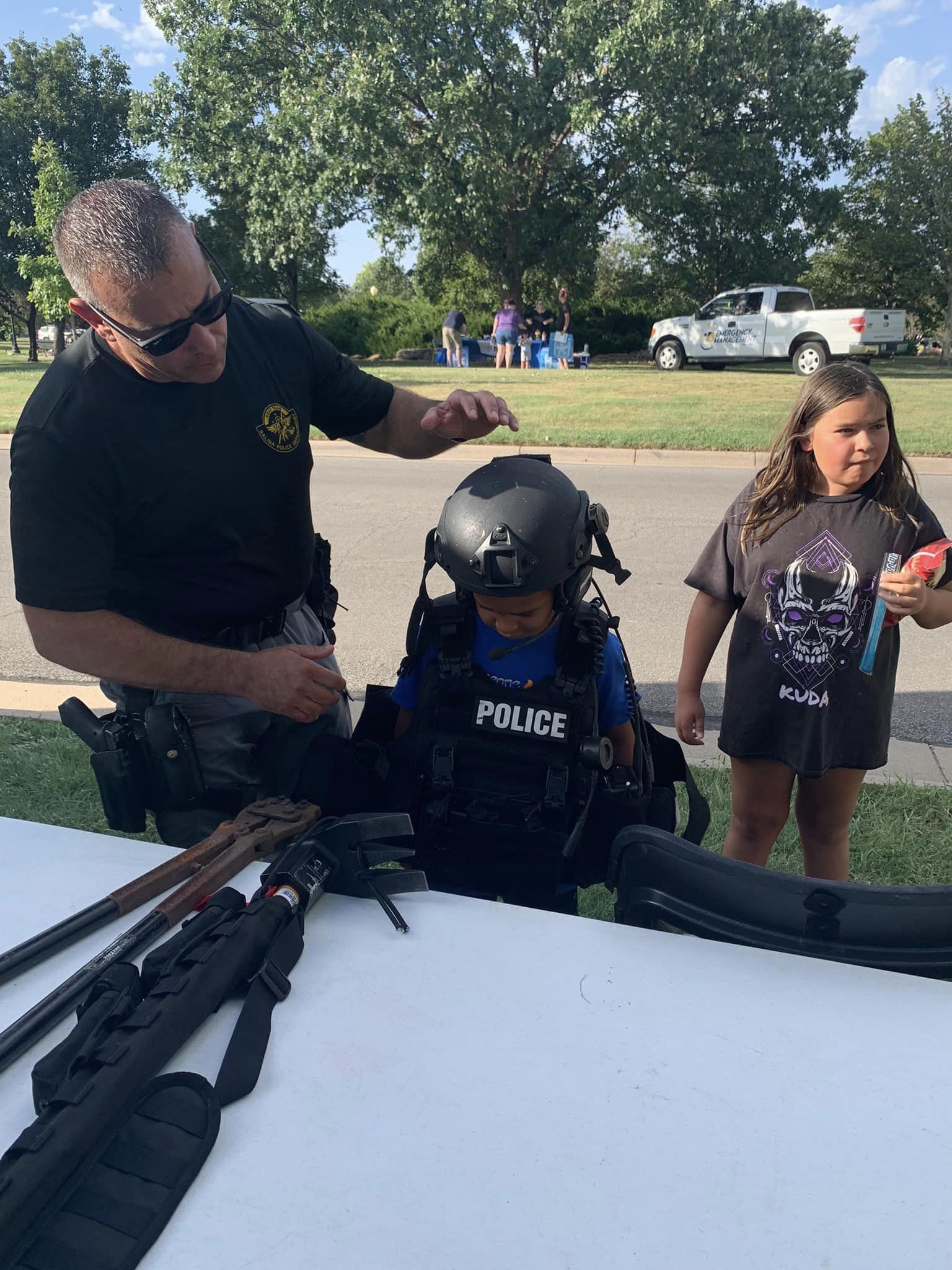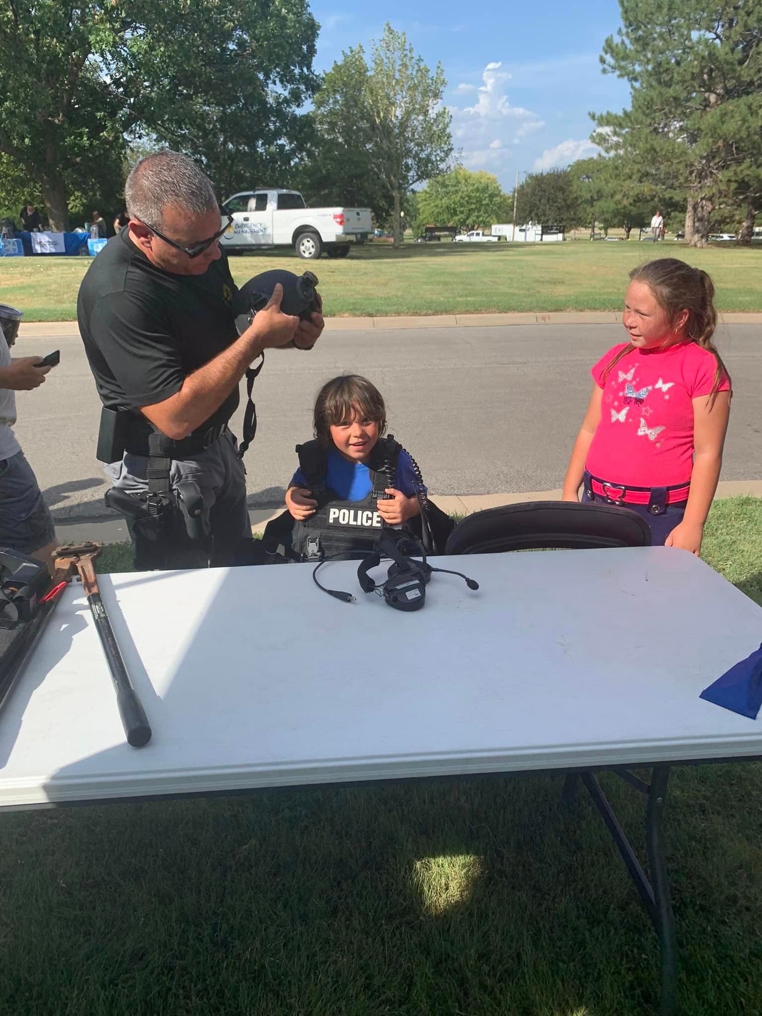 National Night Out is an annual event held on the first Tuesday in August. The purpose is to enhance the relationship between law enforcement and the community in which they serve. Kids were able to talk to officers and first responders, while trying on their gear and seeing how certain equipment works.
