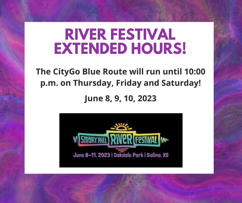 OCCK, Inc. Transportation’s Salina CityGo and Paratransit services will be offering free rides and extended hours to patrons of the Smoky Hill River Festival.