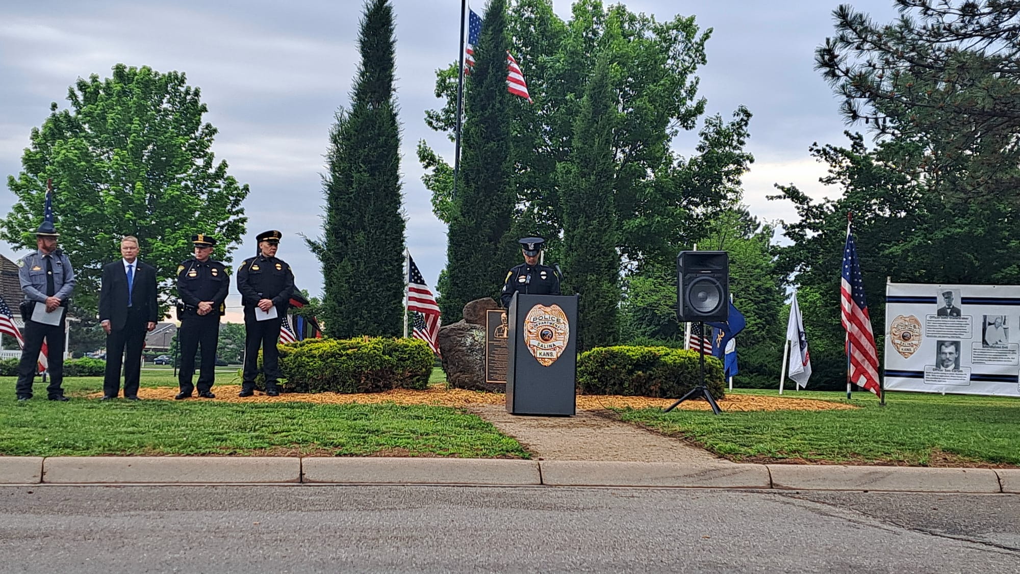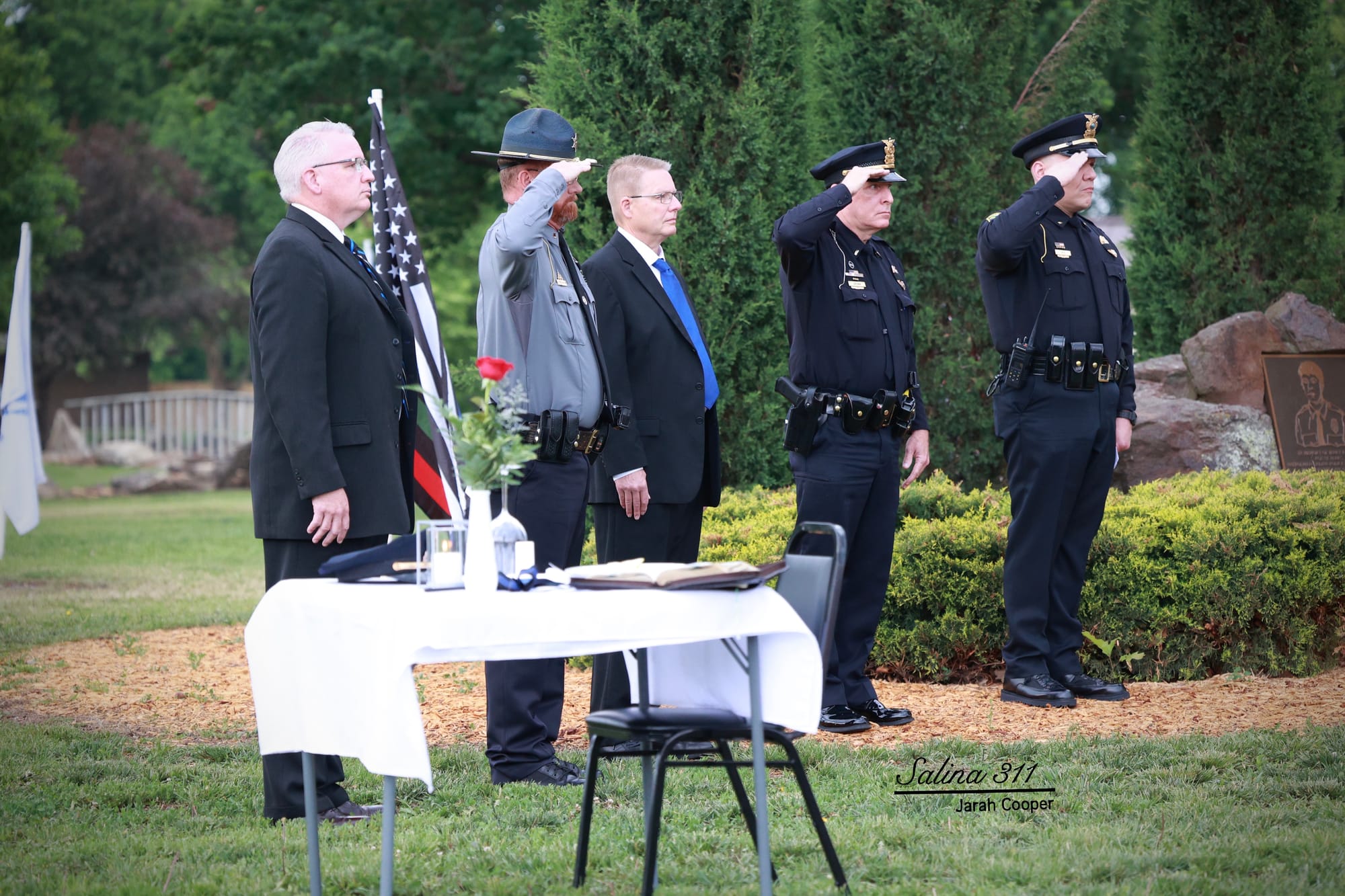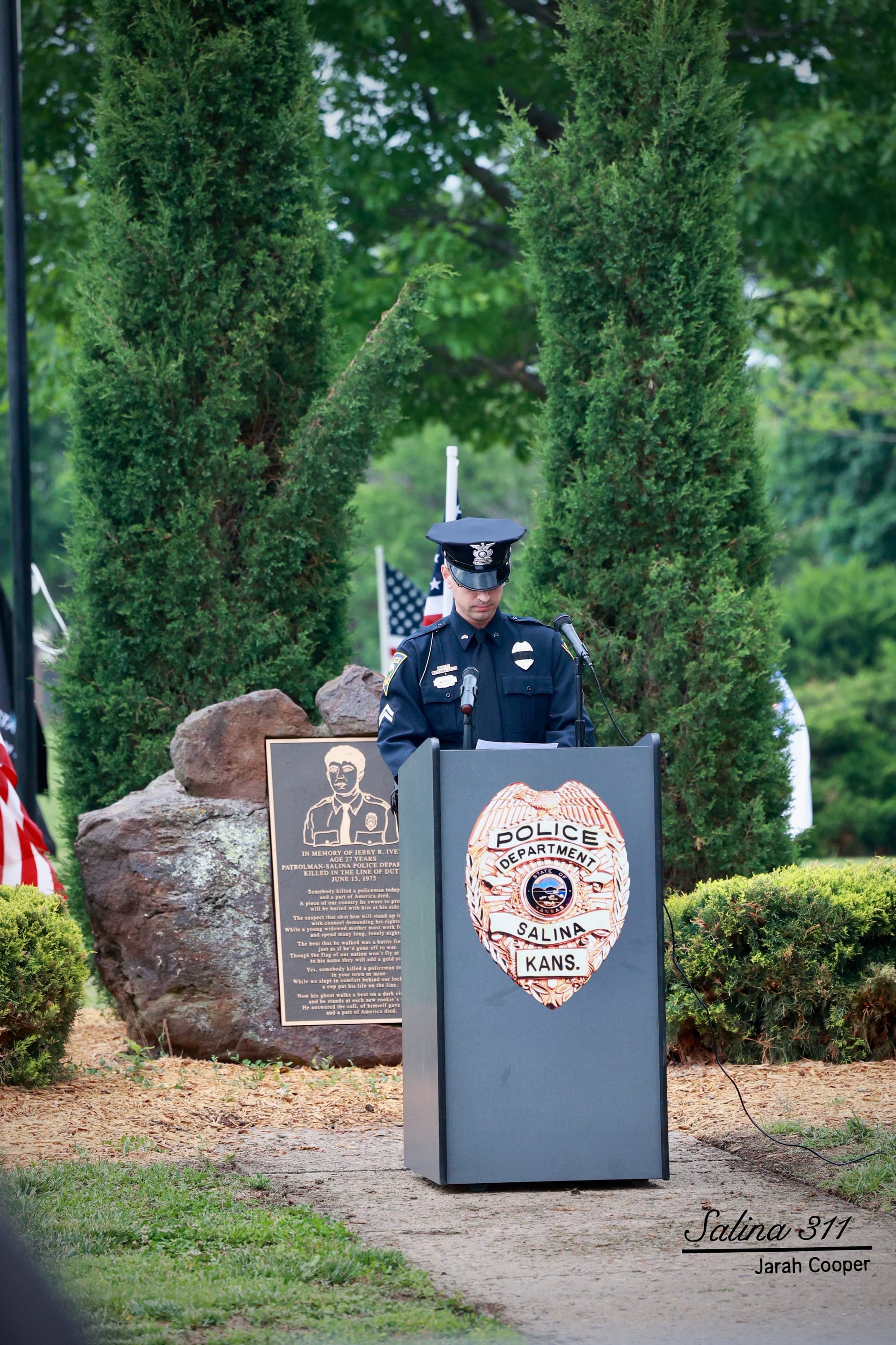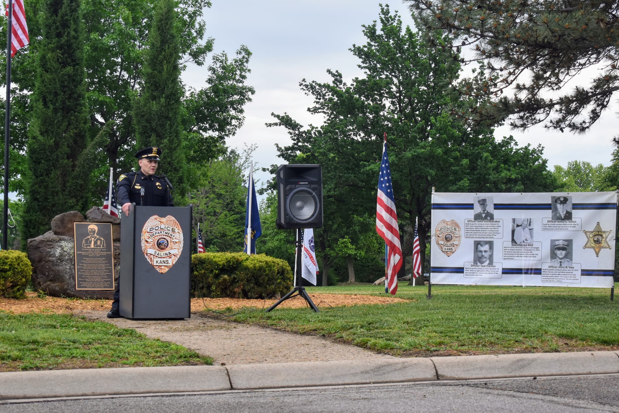 The Salina community gathered at Jerry Ivey Park to remember fallen officers of law enforcement. It was a dreary day, but the morning rain gave way to a beautiful ceremony. Mayor Longbine spoke on how "we owe a debt of gratitude to those who gave their life to uphold justice." Law enforcement officers who have died protecting our community are: