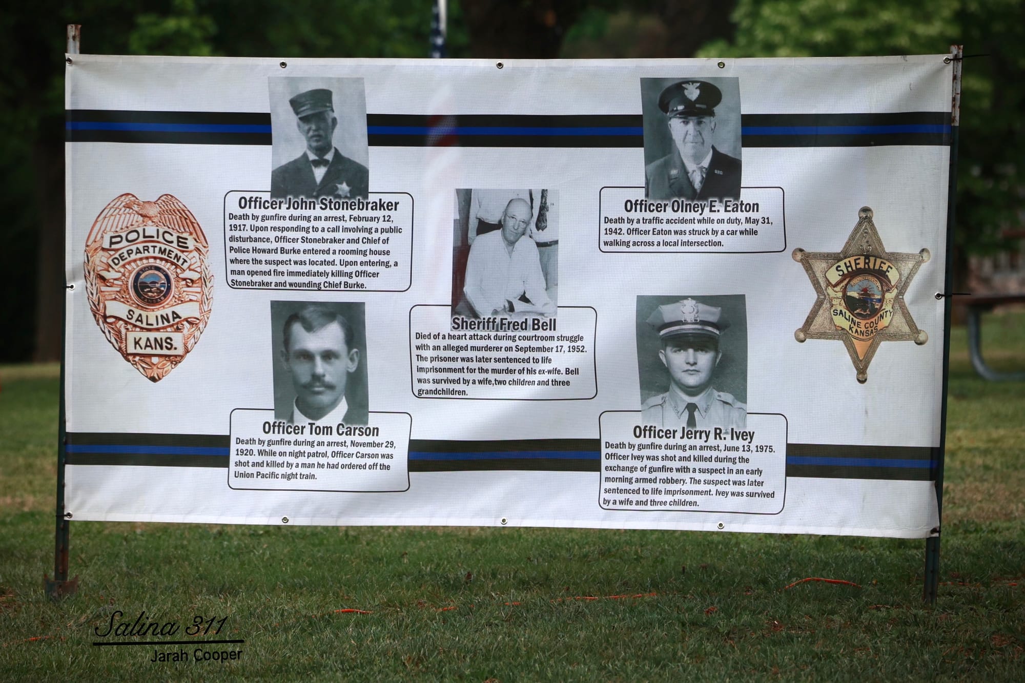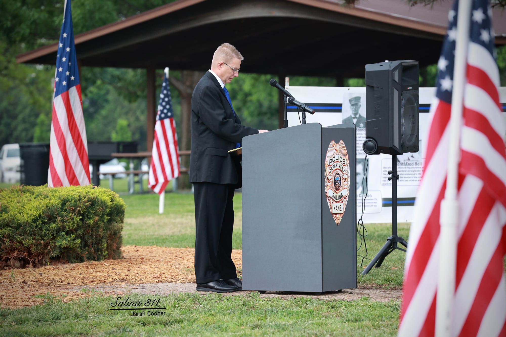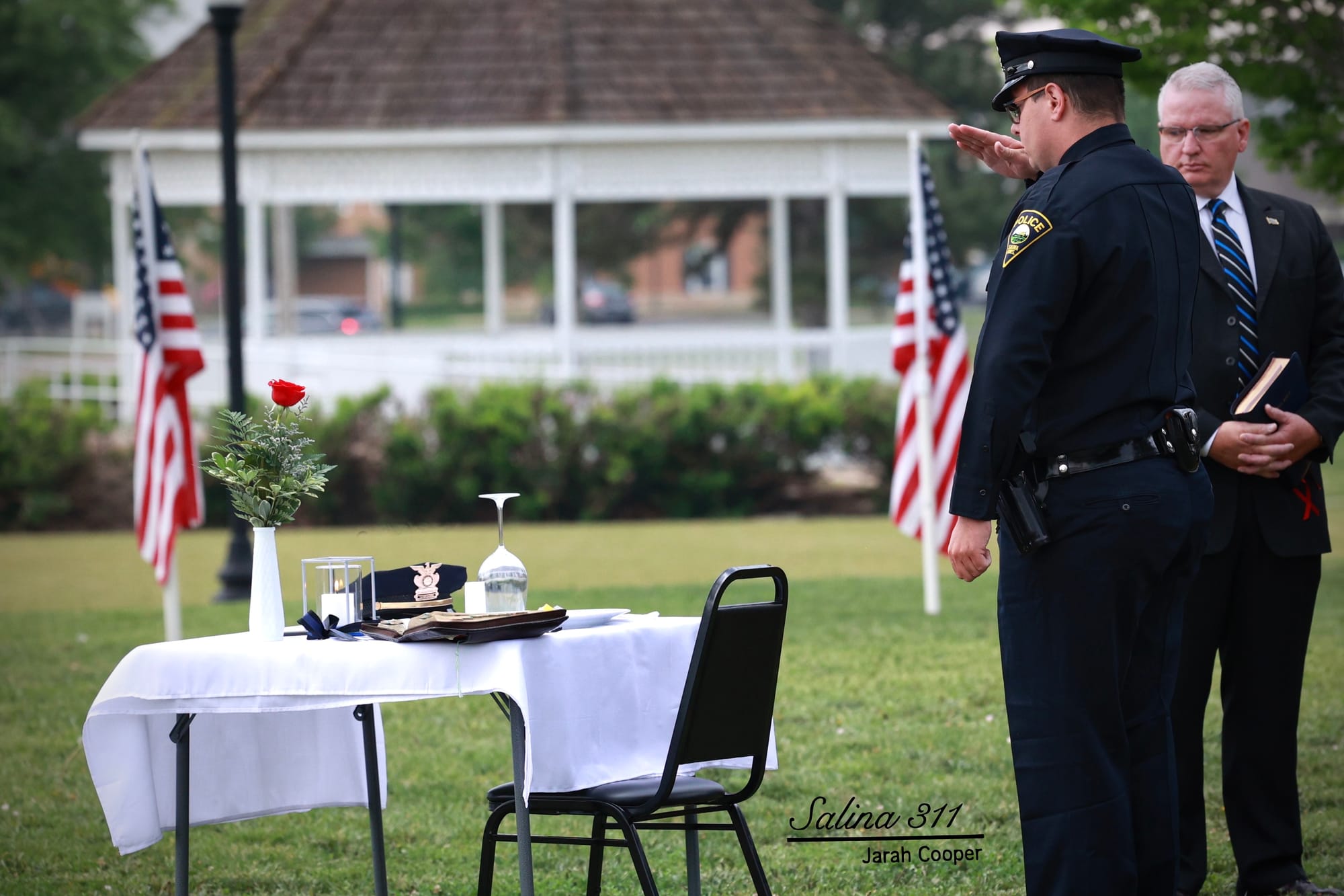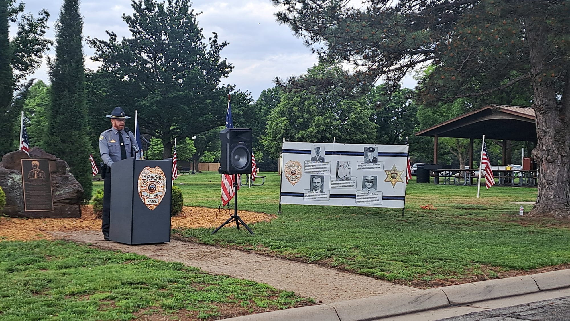 The Salina community gathered at Jerry Ivey Park to remember fallen officers of law enforcement. It was a dreary day, but the morning rain gave way to a beautiful ceremony. Mayor Longbine spoke on how "we owe a debt of gratitude to those who gave their life to uphold justice." Law enforcement officers who have died protecting our community are: