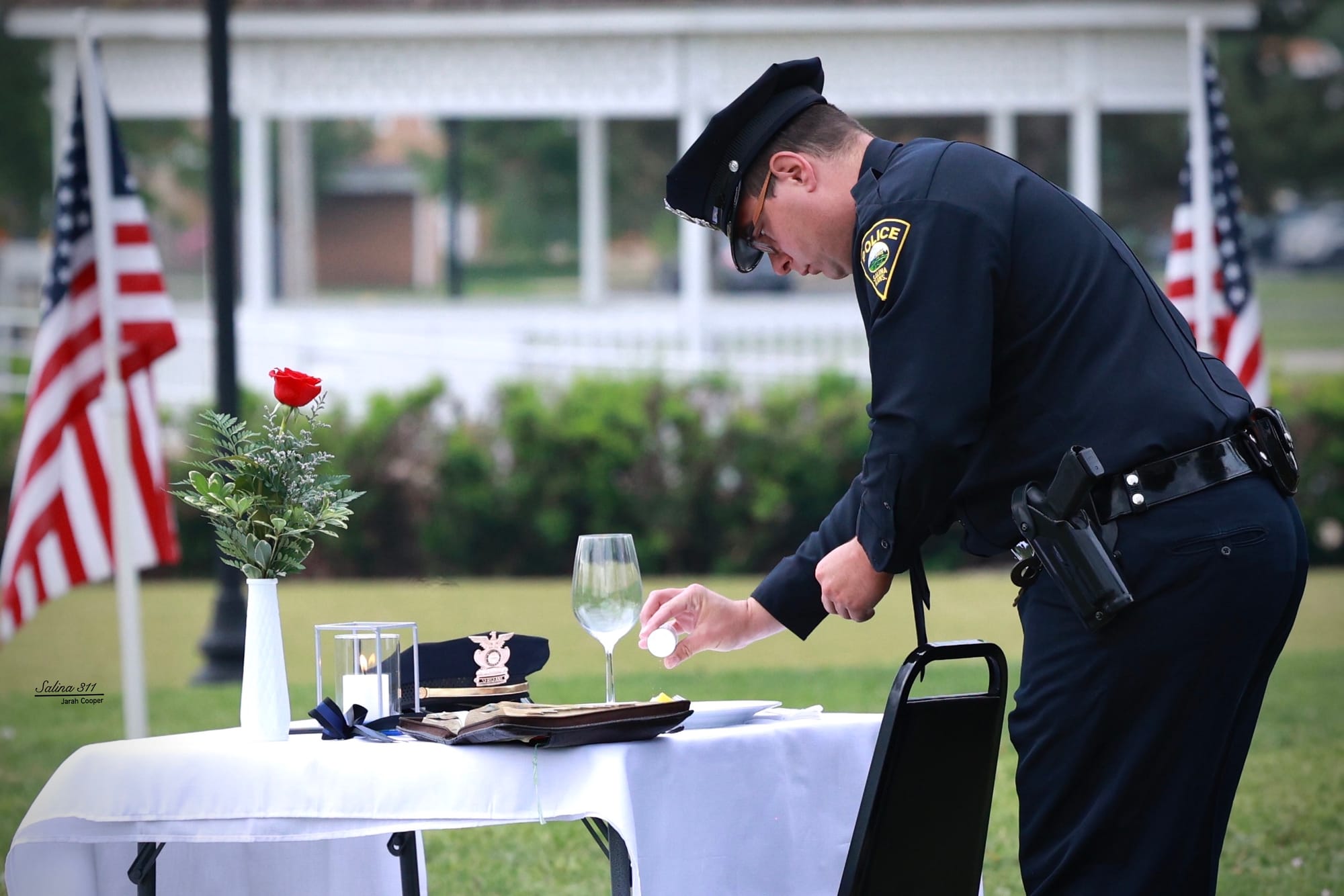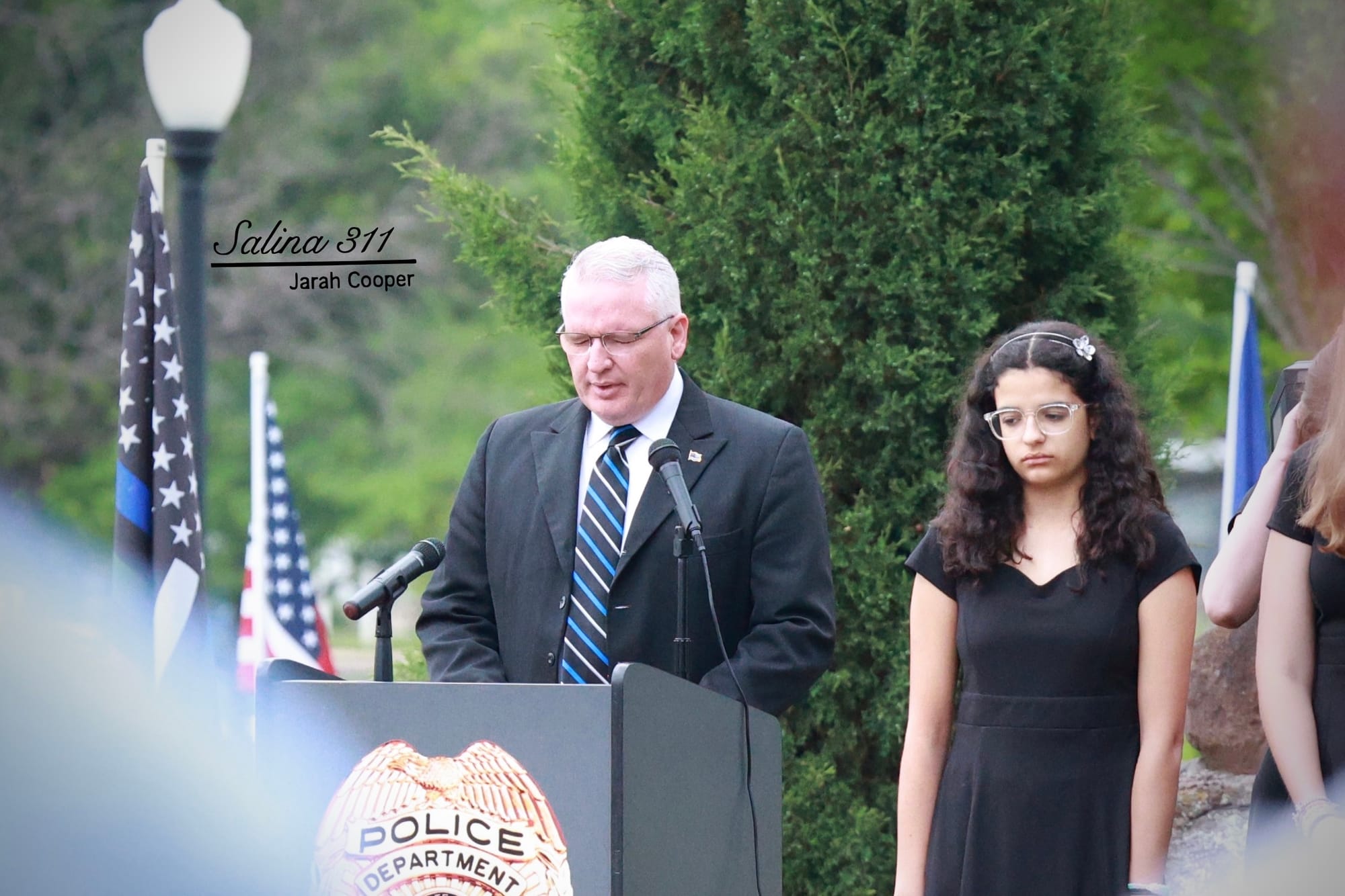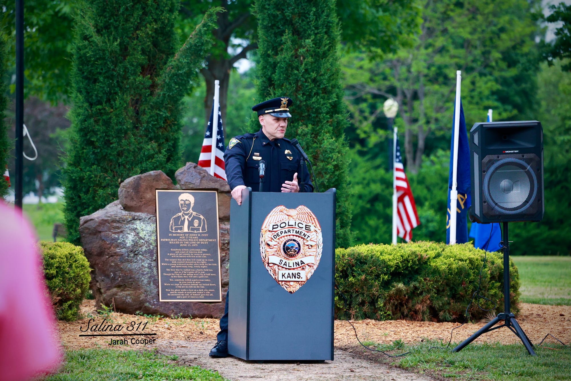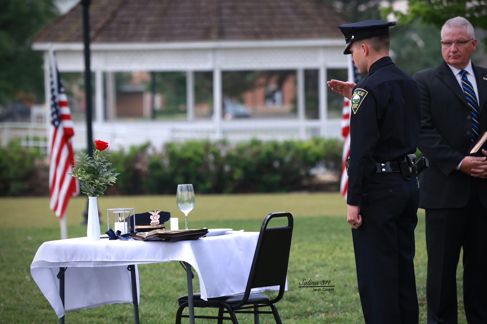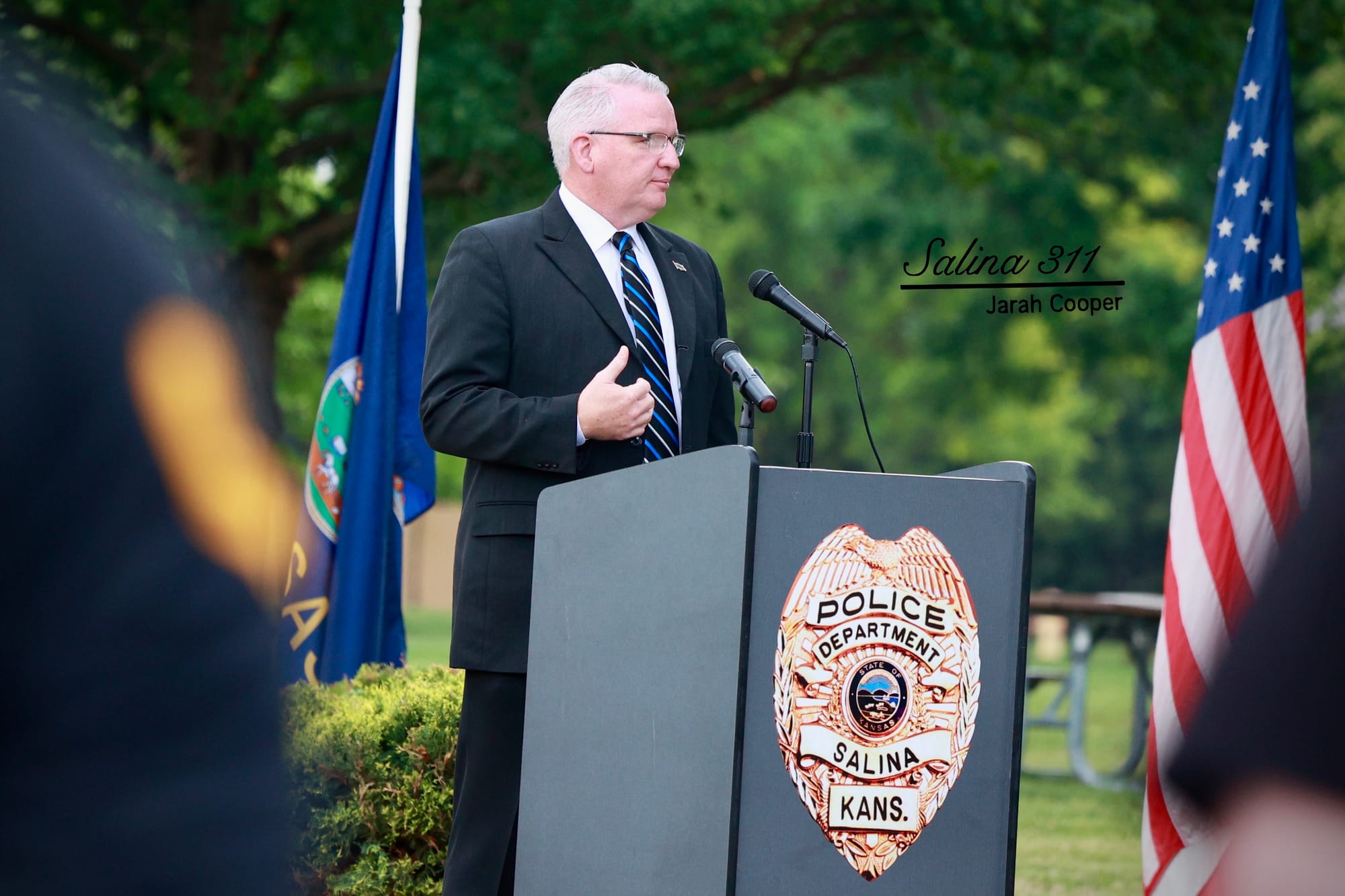 The Salina community gathered at Jerry Ivey Park to remember fallen officers of law enforcement. It was a dreary day, but the morning rain gave way to a beautiful ceremony. Mayor Longbine spoke on how "we owe a debt of gratitude to those who gave their life to uphold justice." Law enforcement officers who have died protecting our community are: