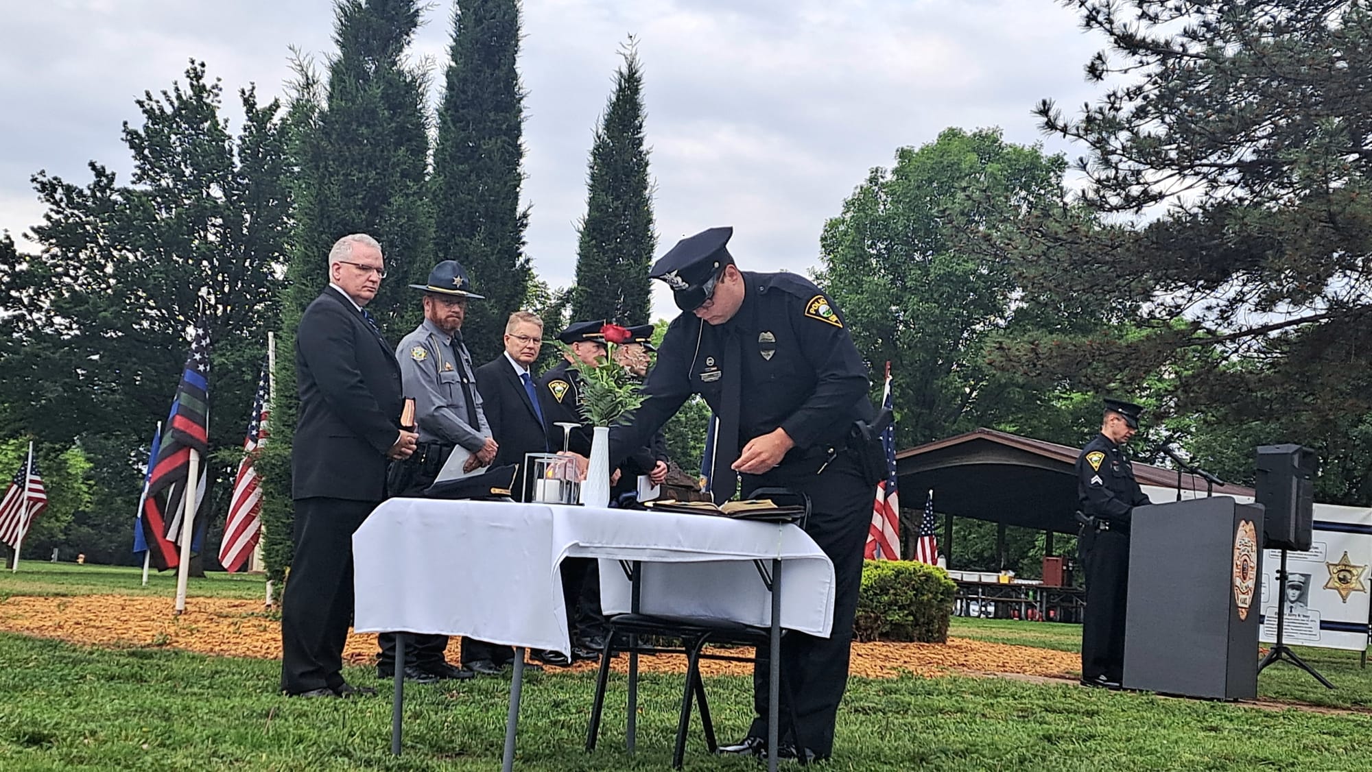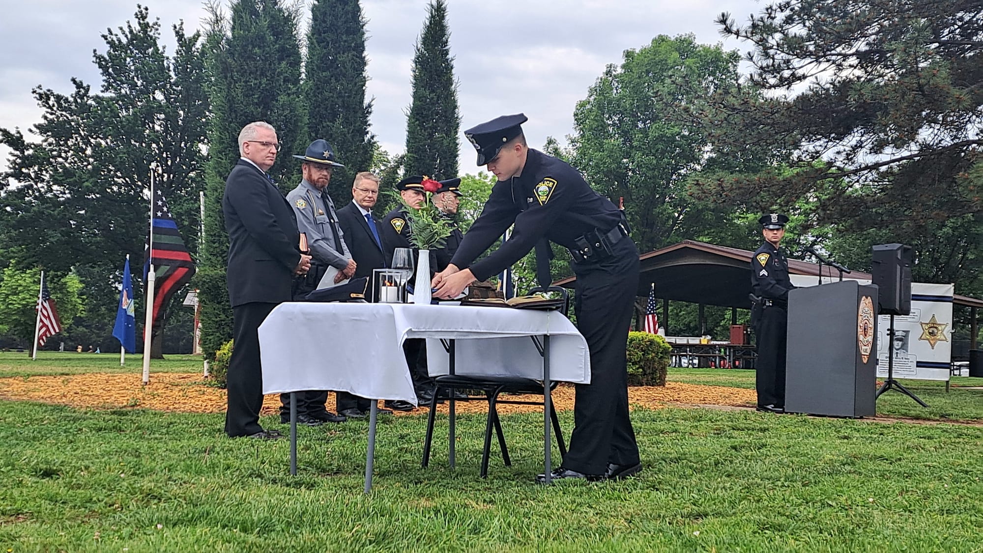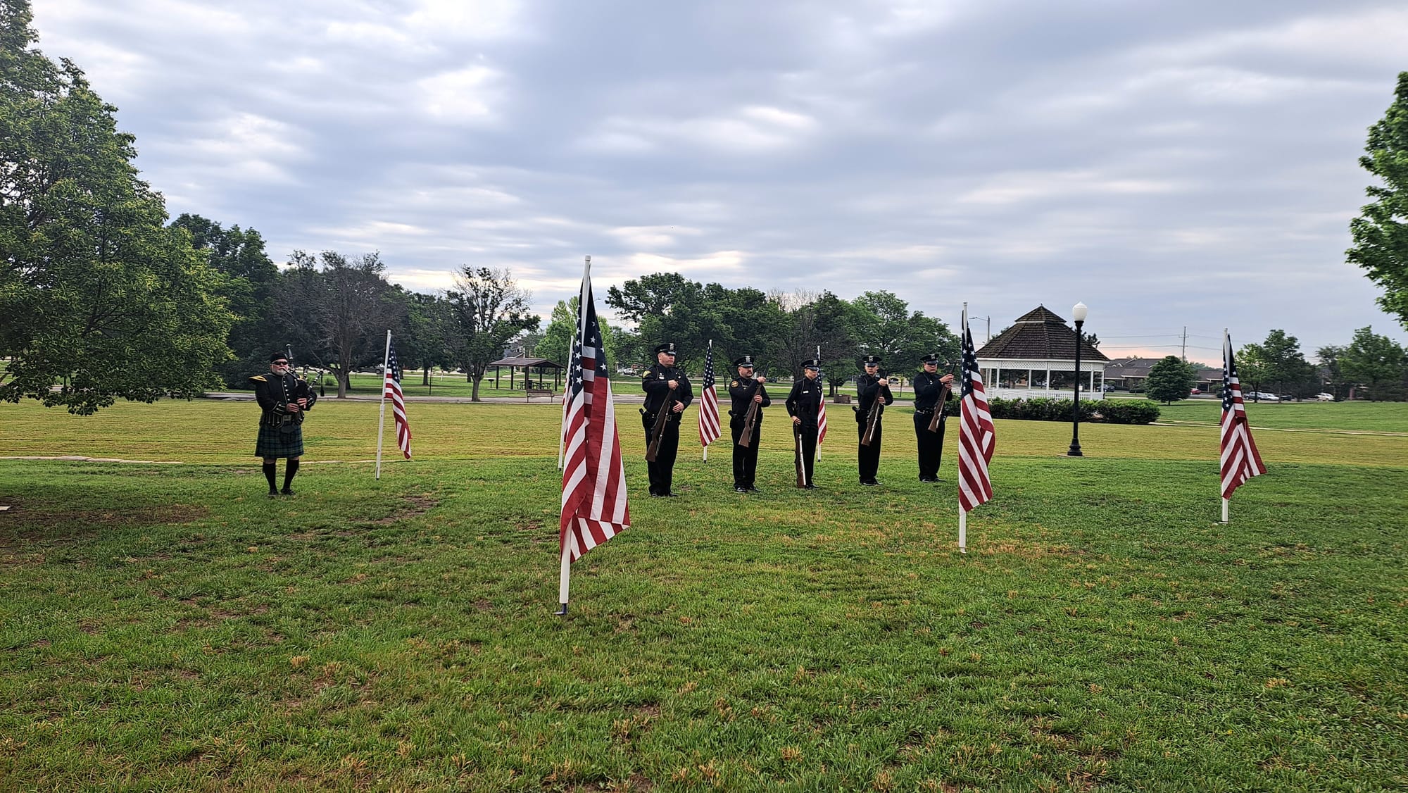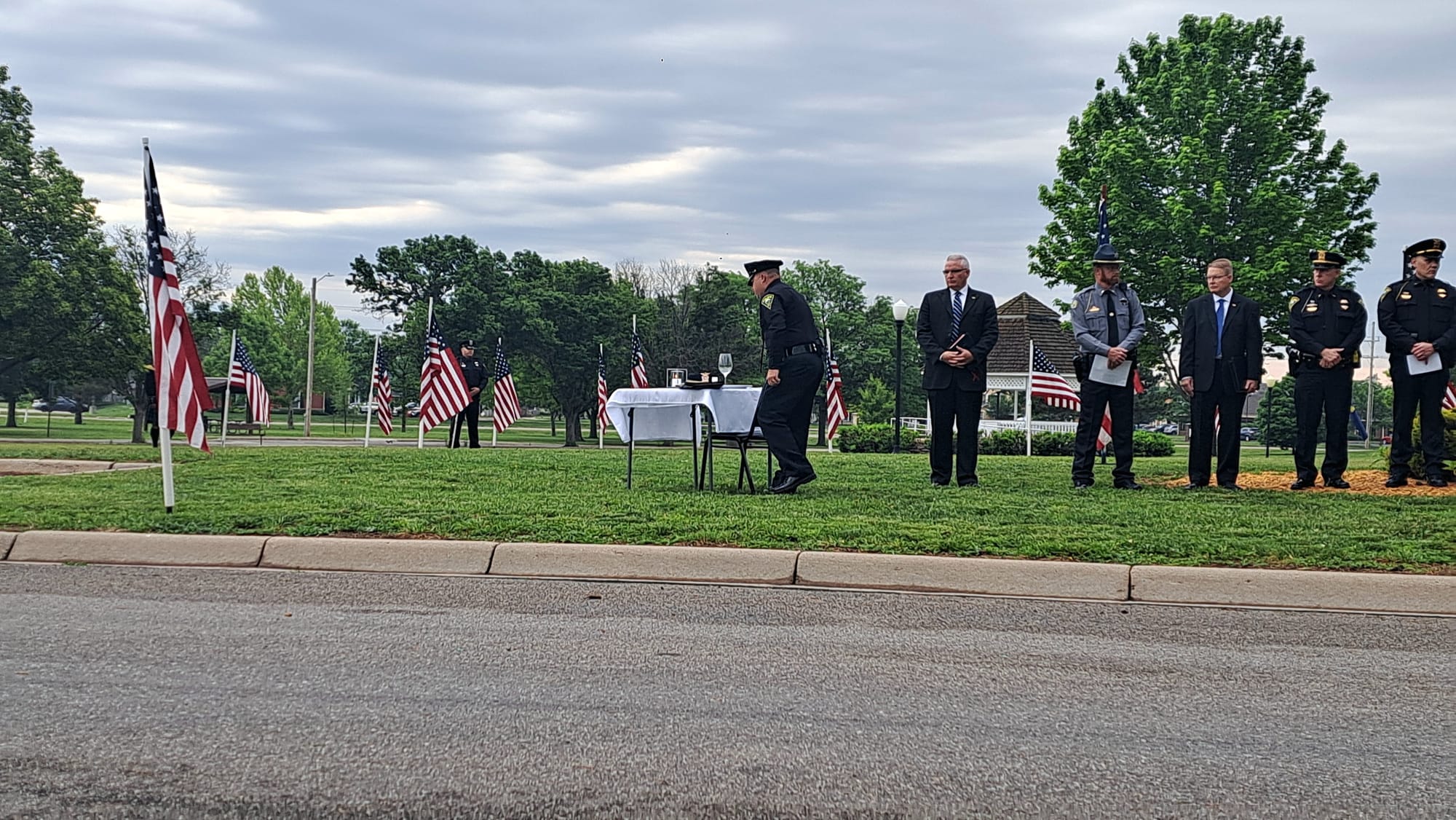 The Salina community gathered at Jerry Ivey Park to remember fallen officers of law enforcement. It was a dreary day, but the morning rain gave way to a beautiful ceremony. Mayor Longbine spoke on how "we owe a debt of gratitude to those who gave their life to uphold justice." Law enforcement officers who have died protecting our community are: