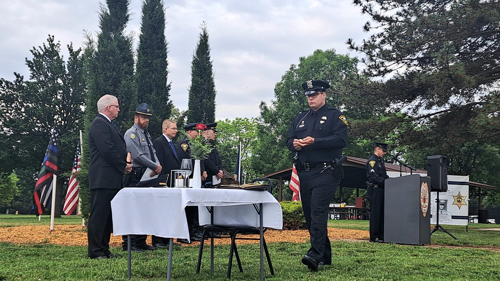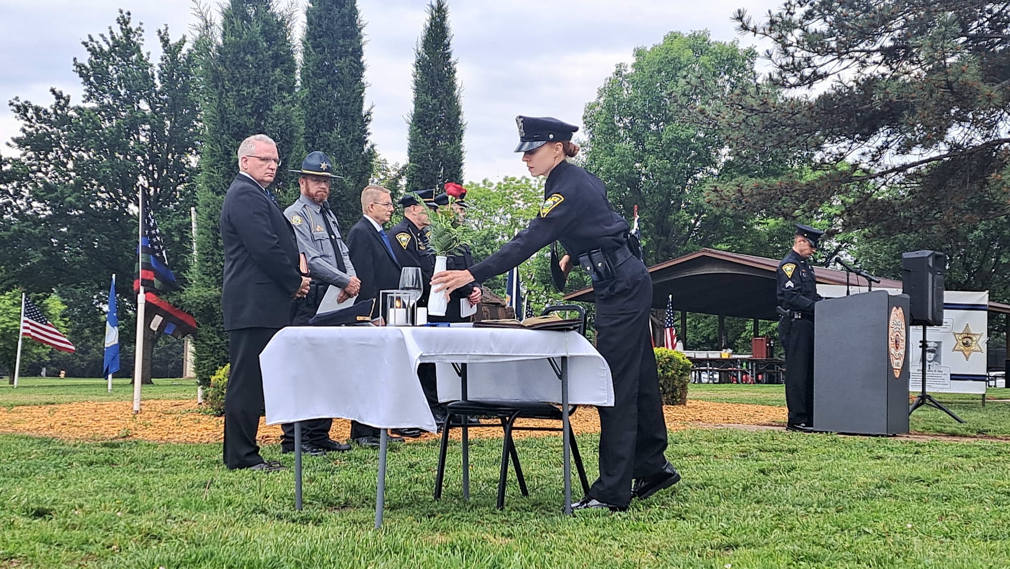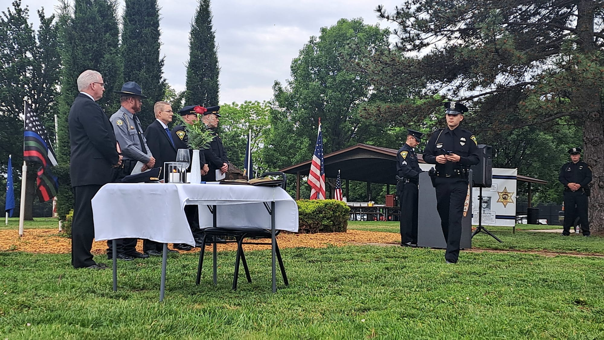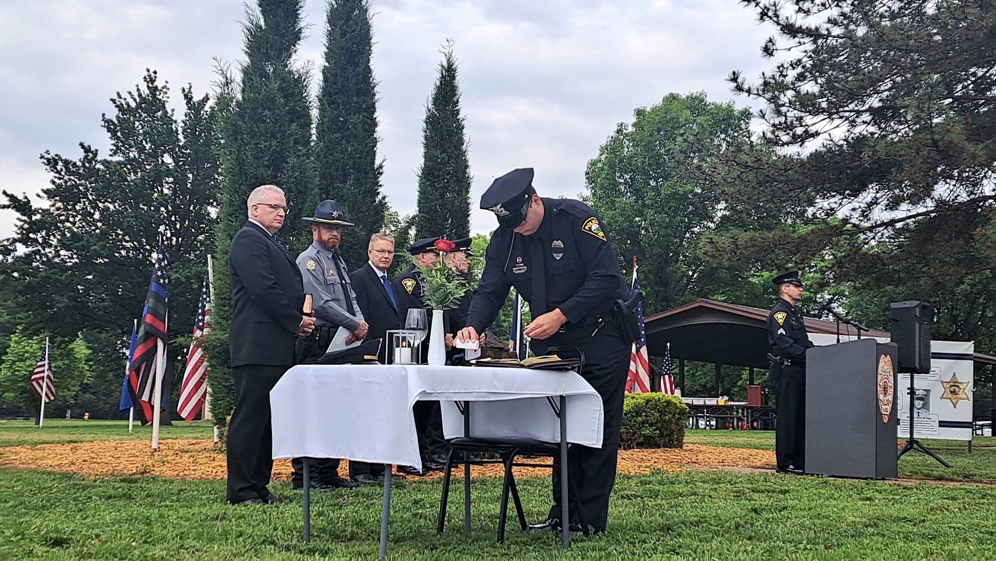 The Salina community gathered at Jerry Ivey Park to remember fallen officers of law enforcement. It was a dreary day, but the morning rain gave way to a beautiful ceremony. Mayor Longbine spoke on how "we owe a debt of gratitude to those who gave their life to uphold justice." Law enforcement officers who have died protecting our community are: