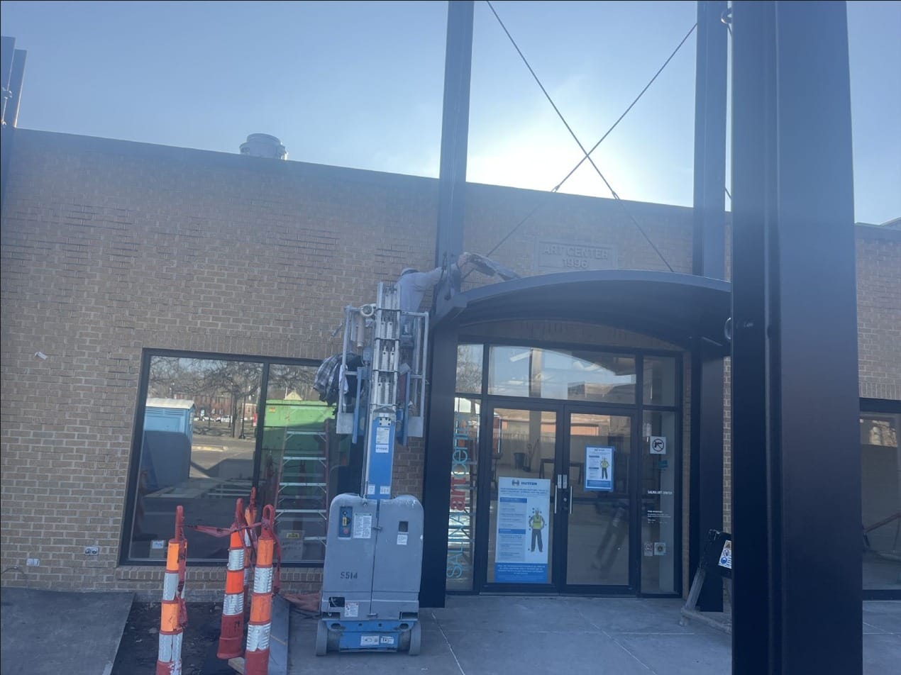 Exciting developments mark the latest update on the ongoing construction at the Salina Art Center. Last week saw significant milestones achieved, including the successful completion and City inspection approval of the kitchen hood fire suppression system. Additionally, the painting of the rear entrance canopy and steel columns has been finalized, enhancing the aesthetic appeal of the center.