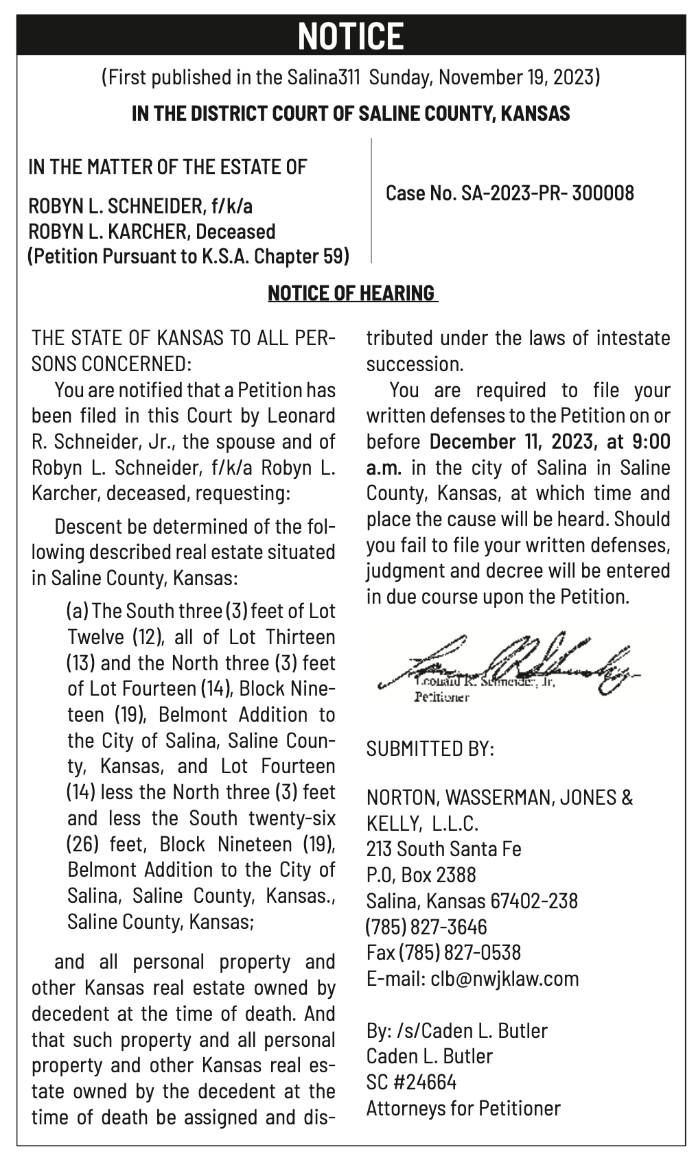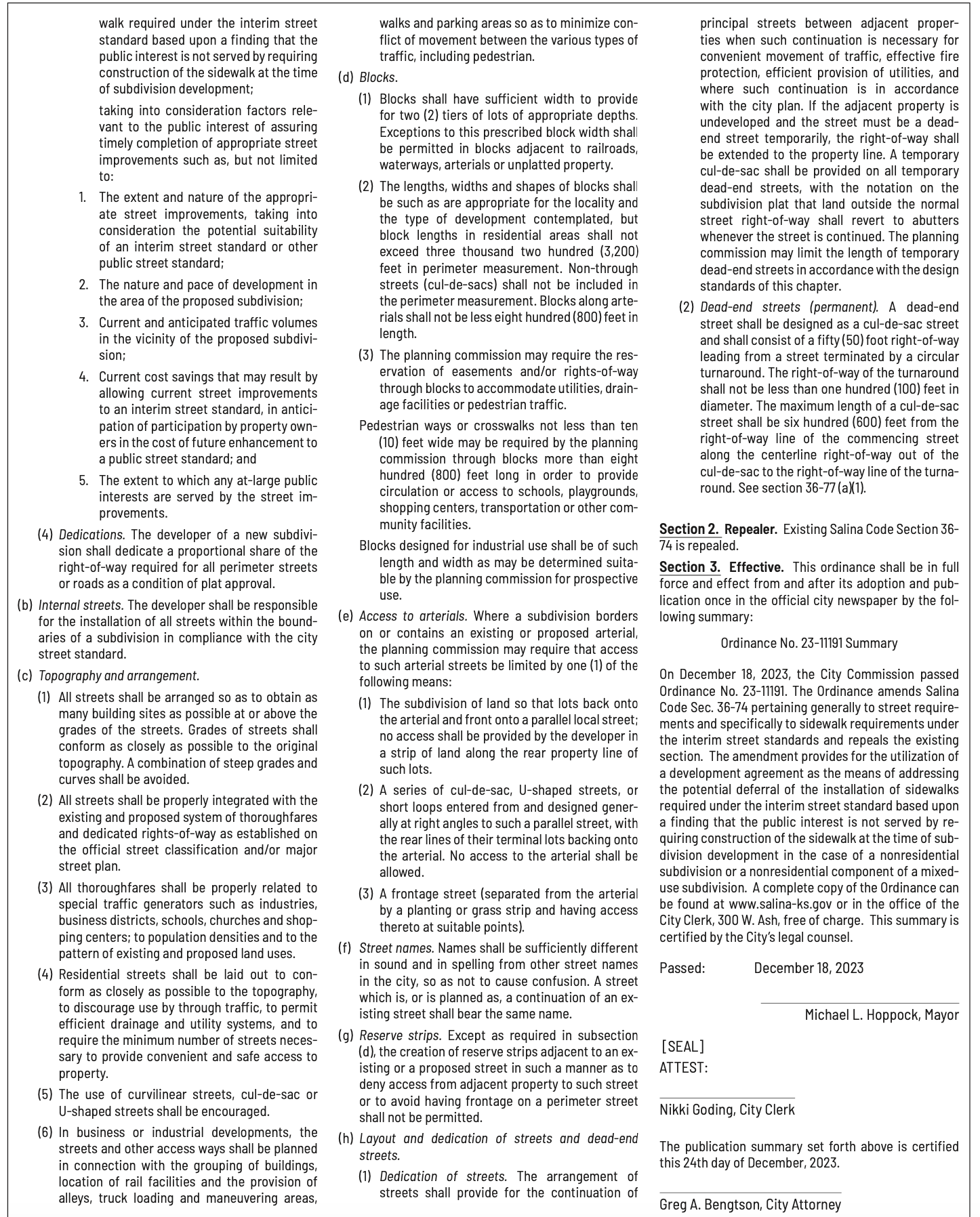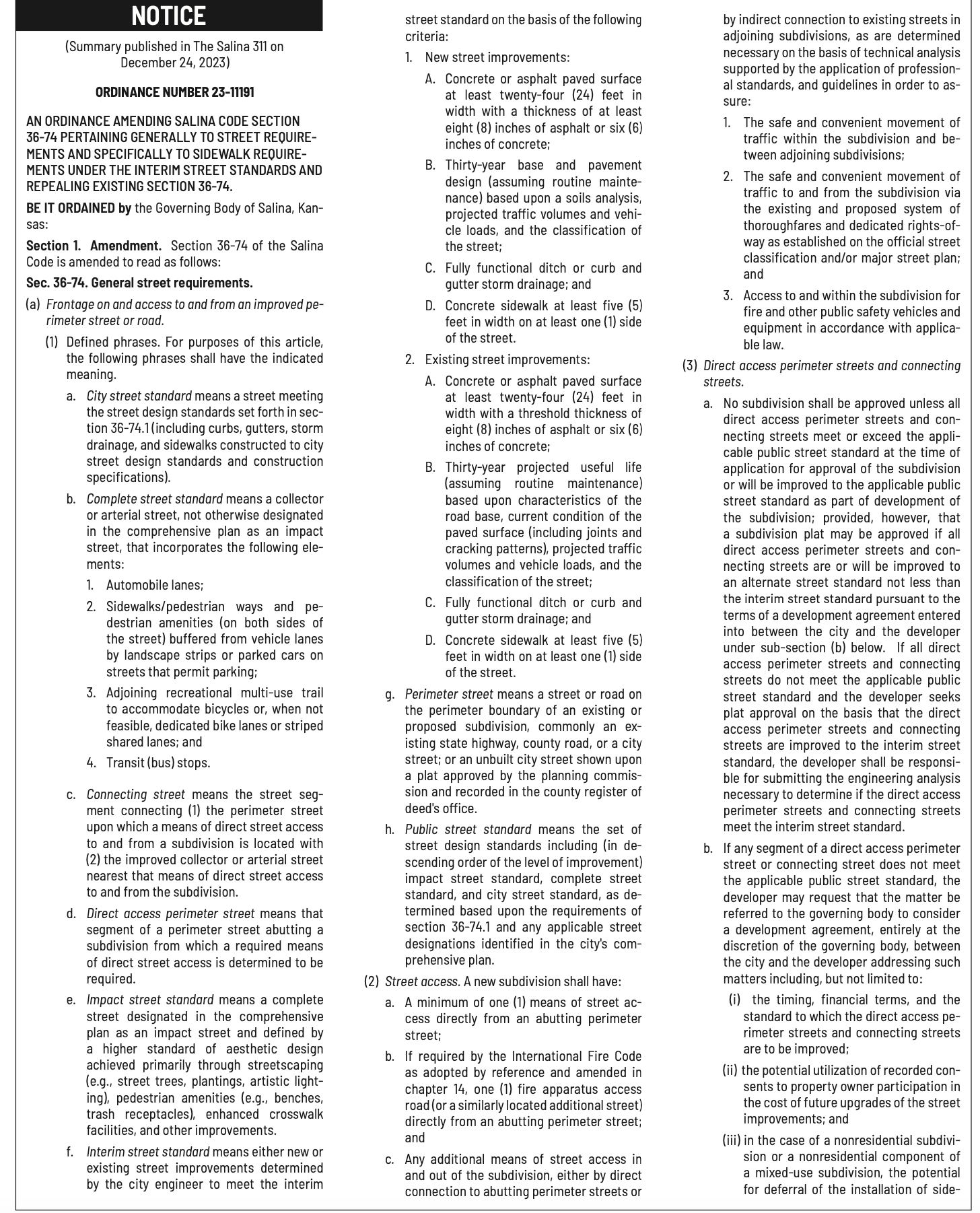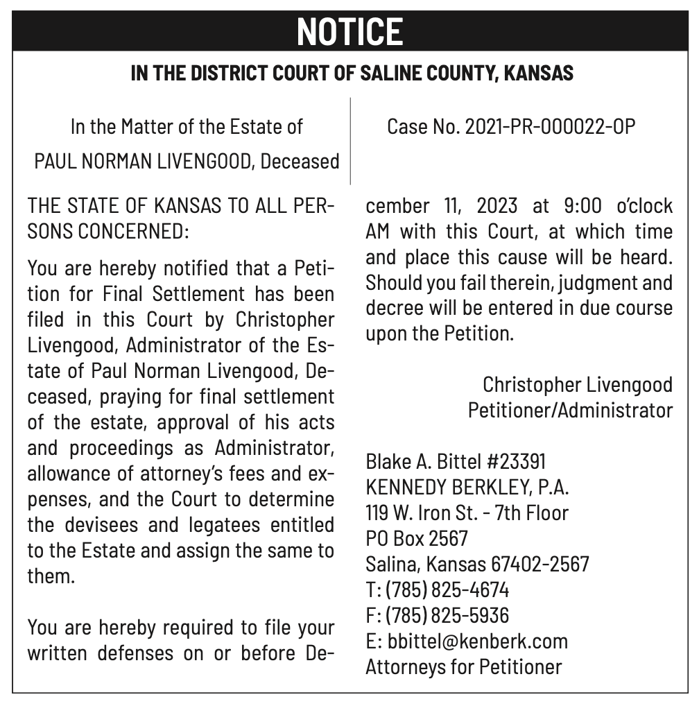 Notices published in the Salina311 Newspaper on December 20th, 24th.π‘This story was featured in the Salina311 Newspaper. Subscribe To The Paper