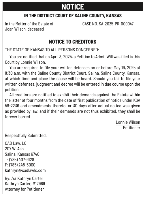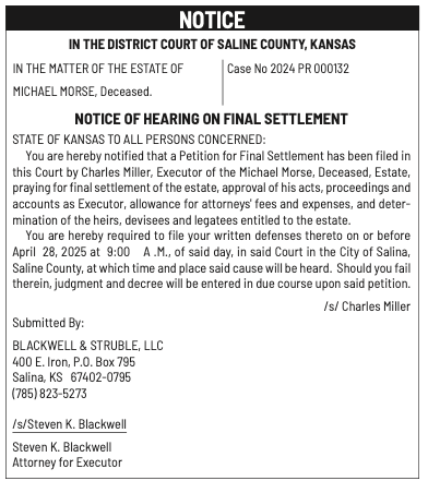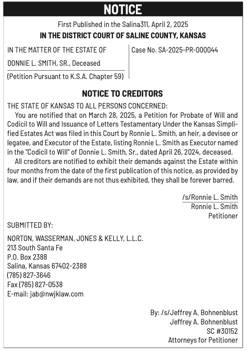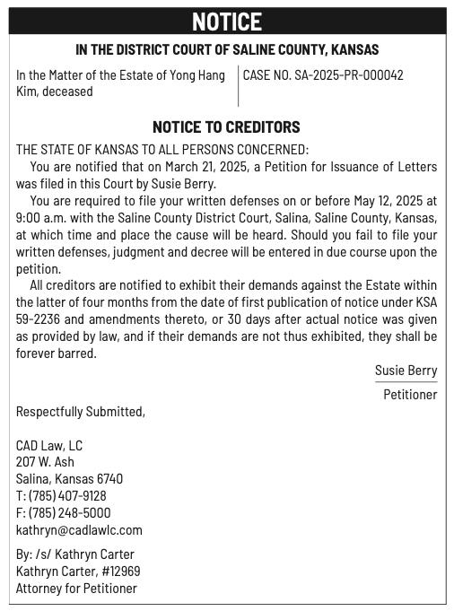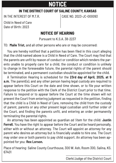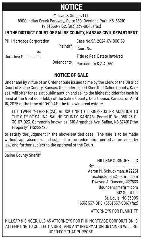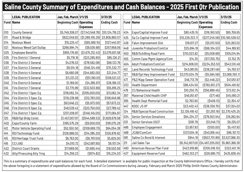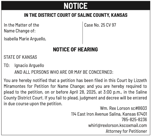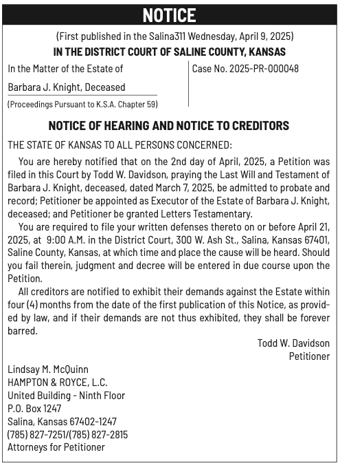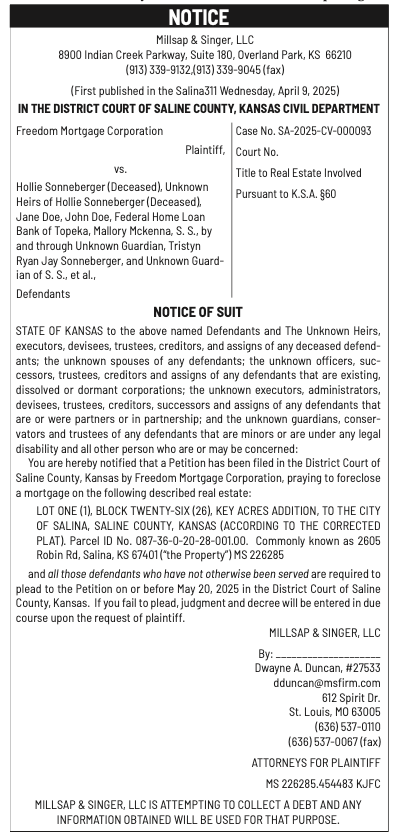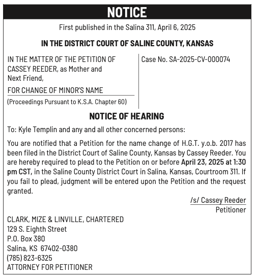 Public notices published in the Salina311 Newspaper on April 13th and/or April 9th.