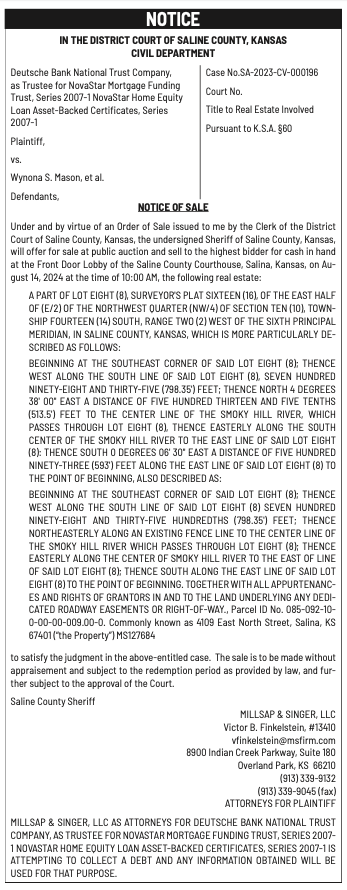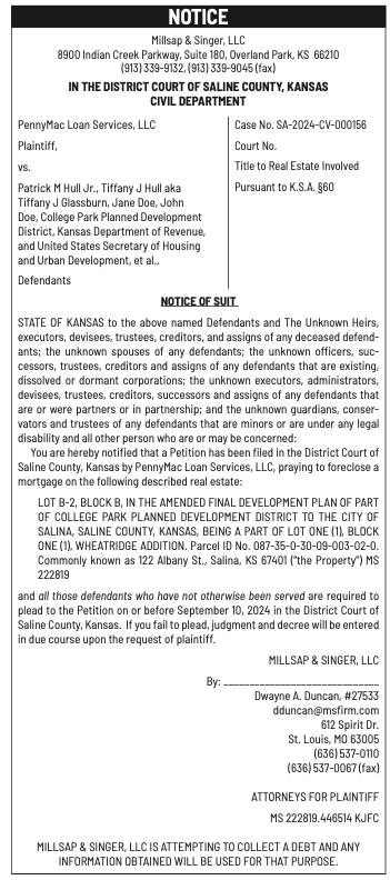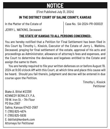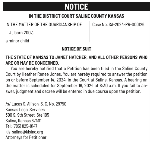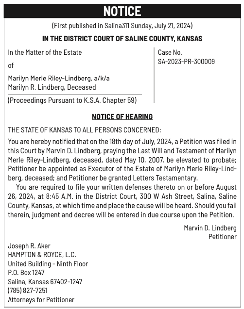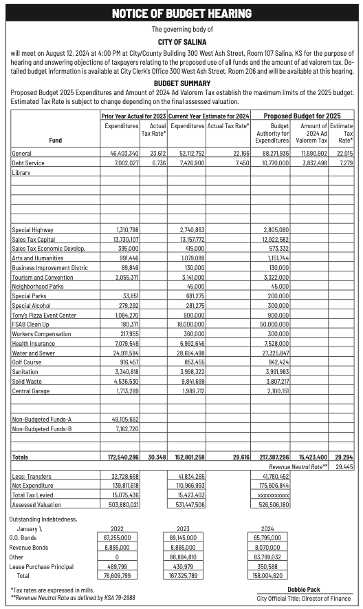 Public notices published in the Salina311 Print Newspaper on July 31 and August 4.
