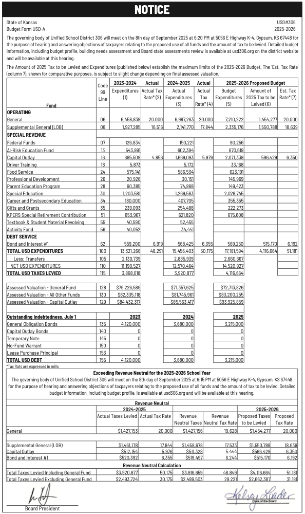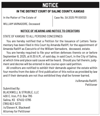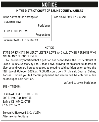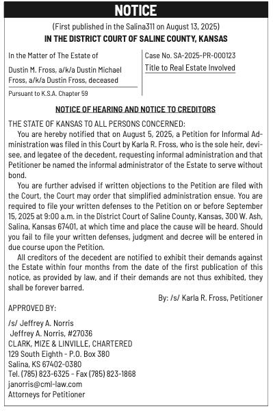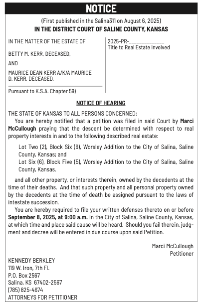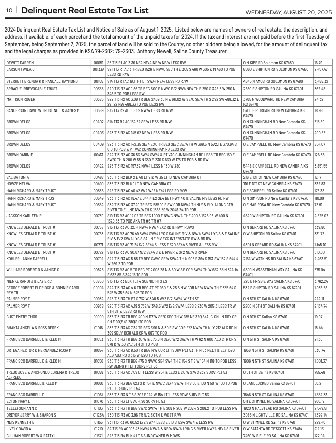 Public notices published in the Salina311 Newspaper on August 24th and/or August 20th.