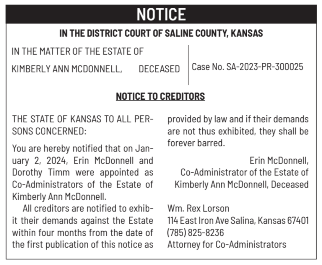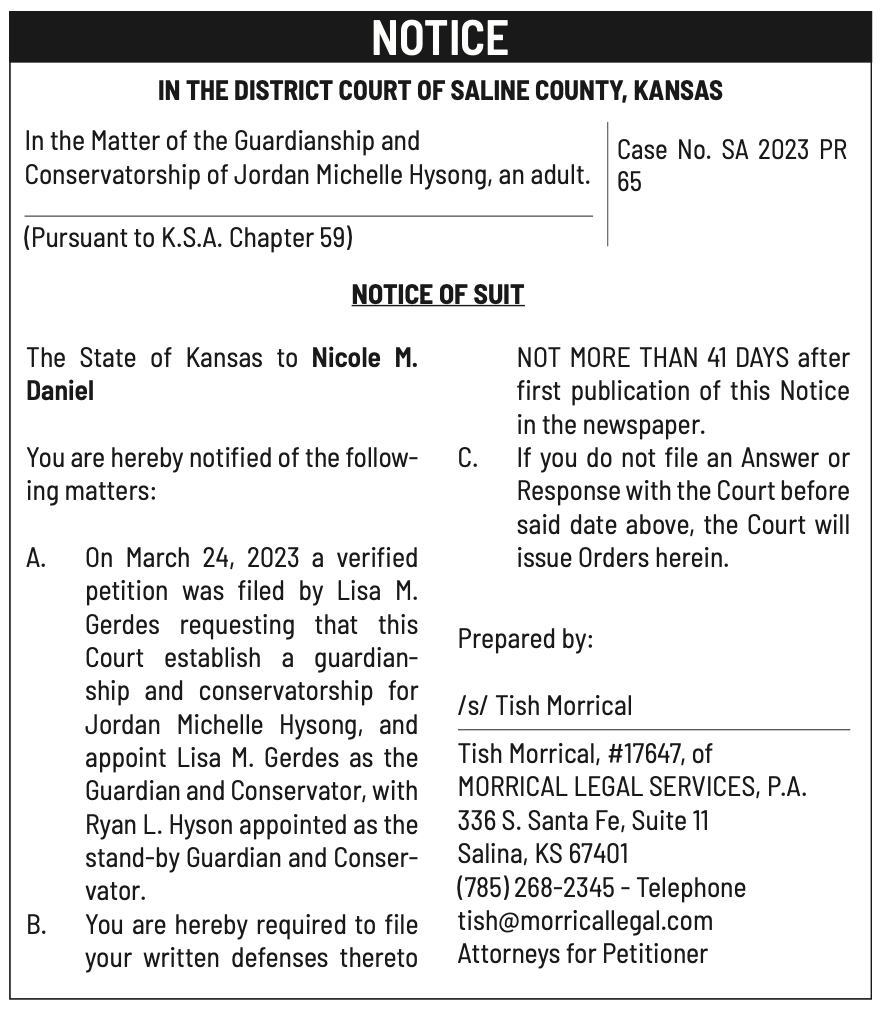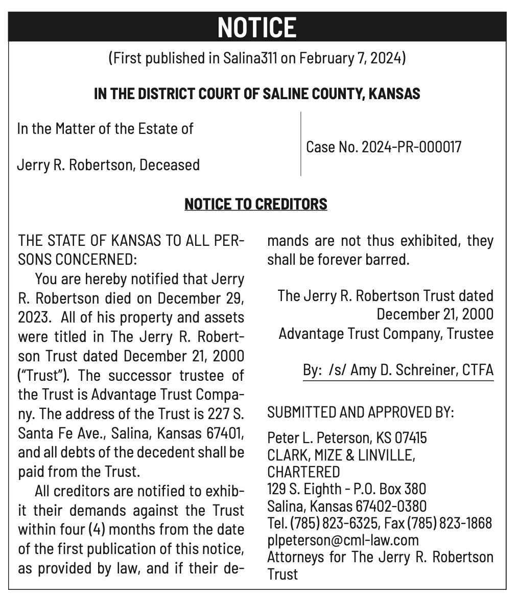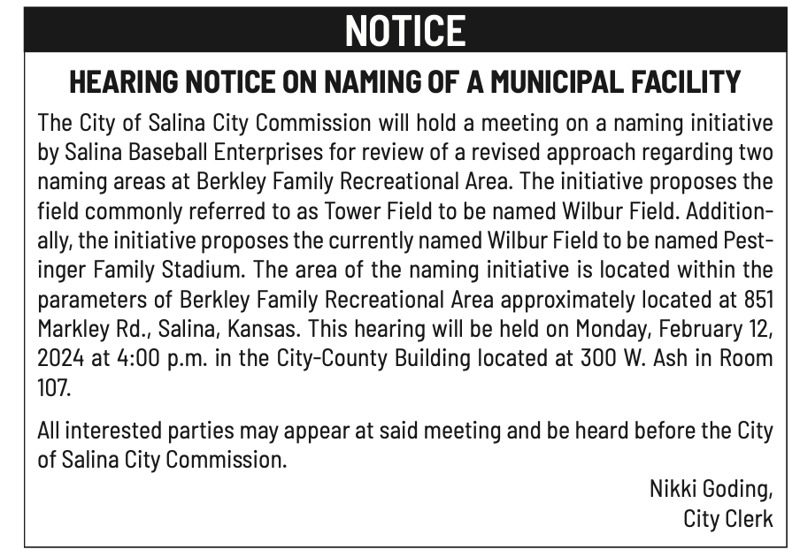 Public notices published in the Salina311 Newspaper on January 31, February 4, and February 7.