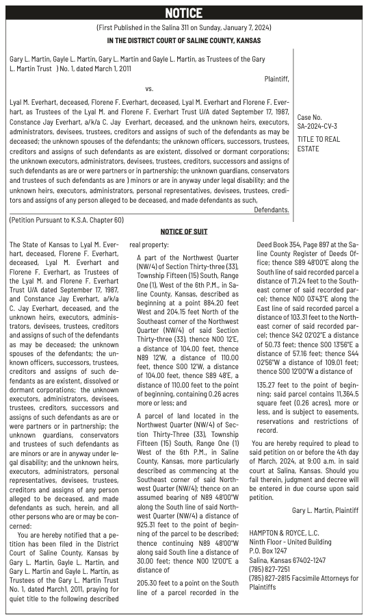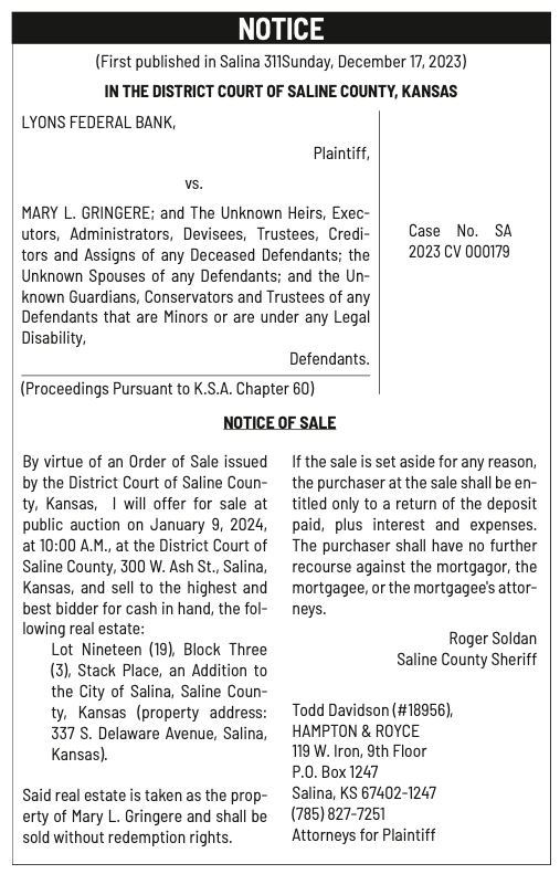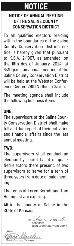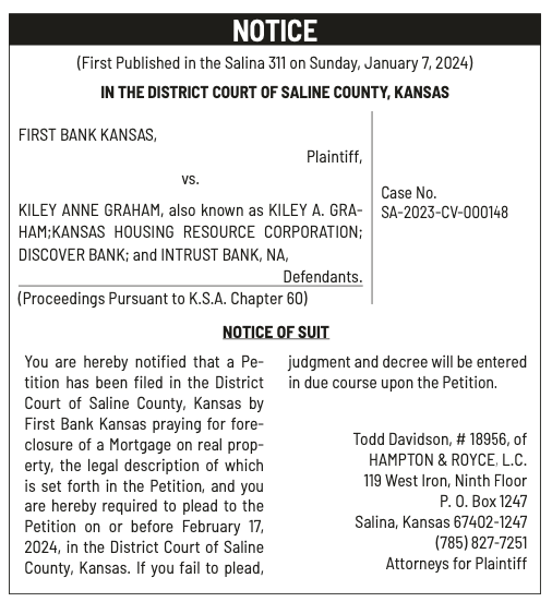 Notices published in the Salina311 Newspaper on January 3, 2024 and January 7, 2024.