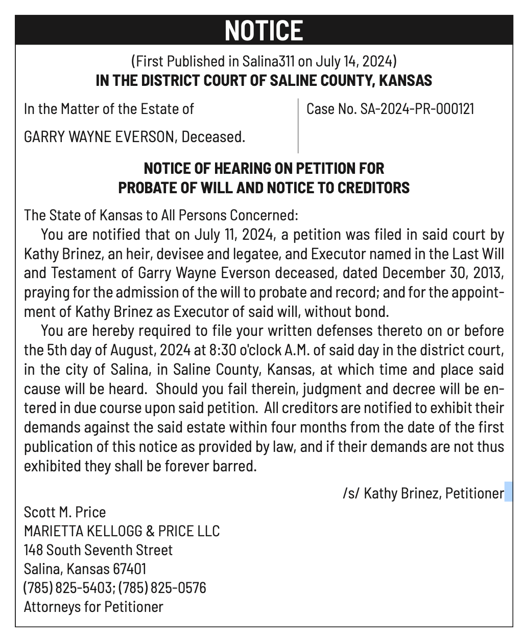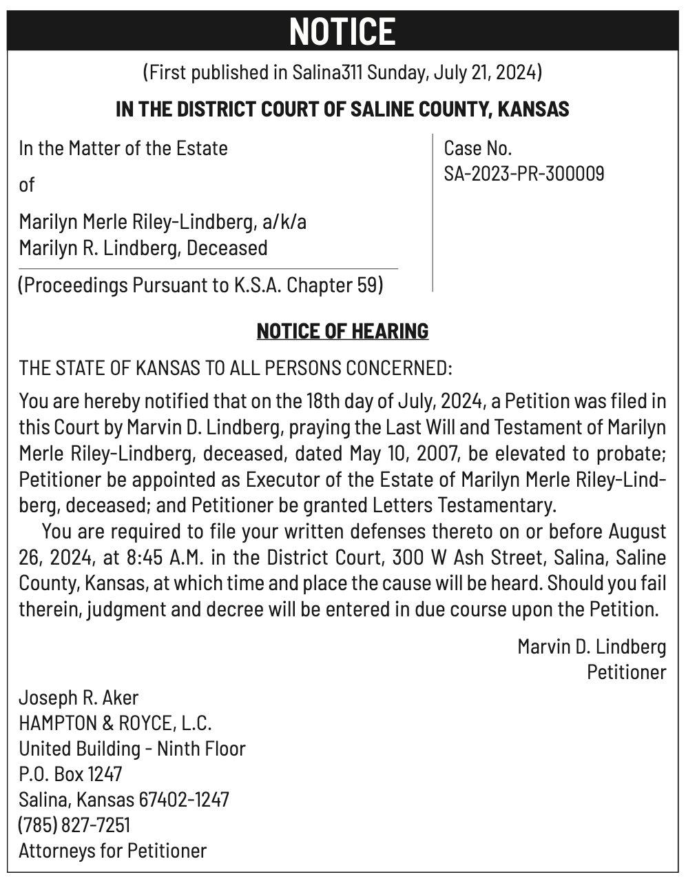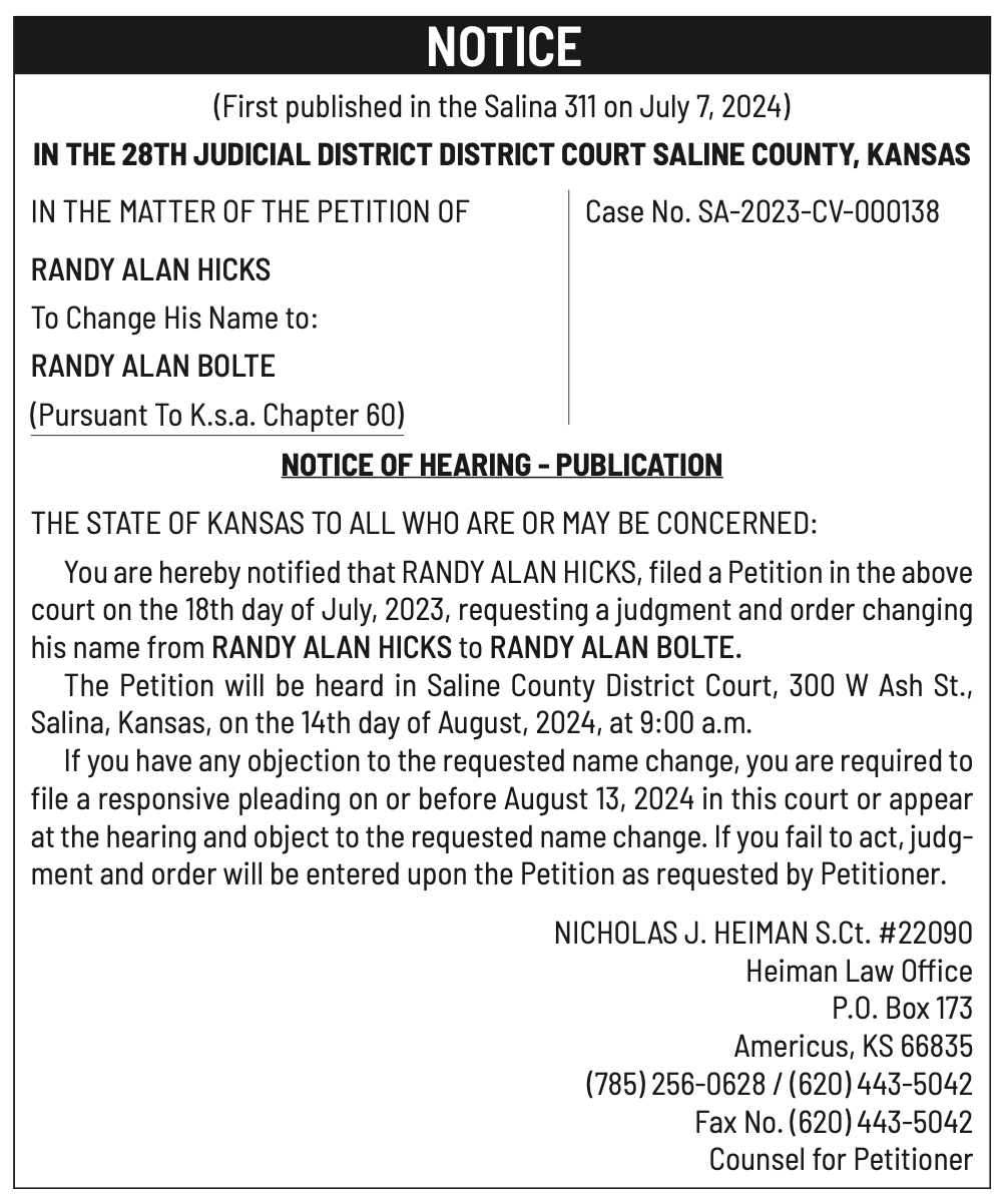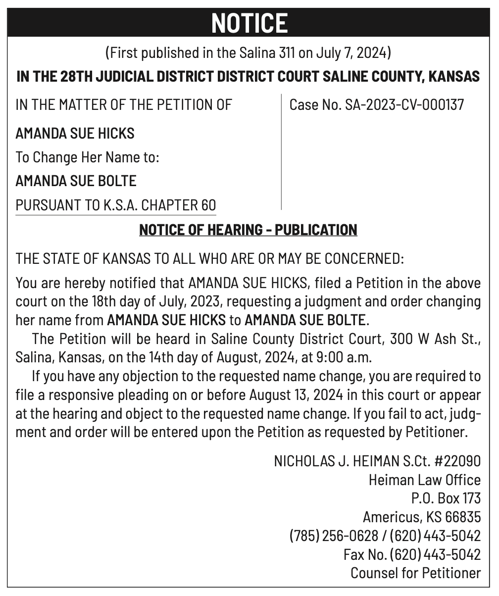 Public notices published in the Salina311 newspaper on July 17 and July 21.π‘This story was featured in the Salina311 Newspaper. Subscribe To The Paper