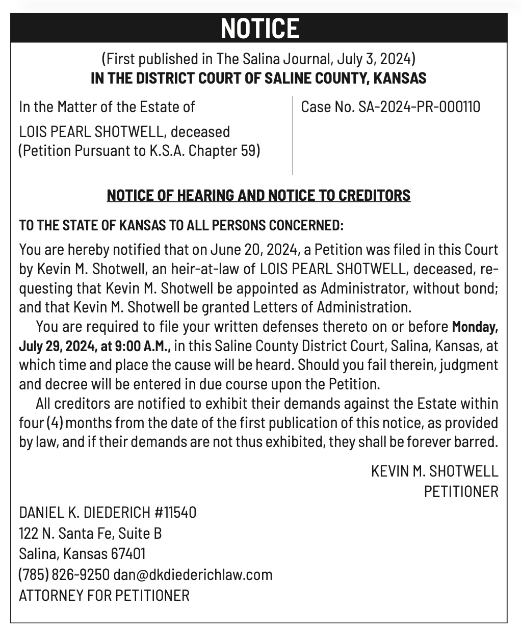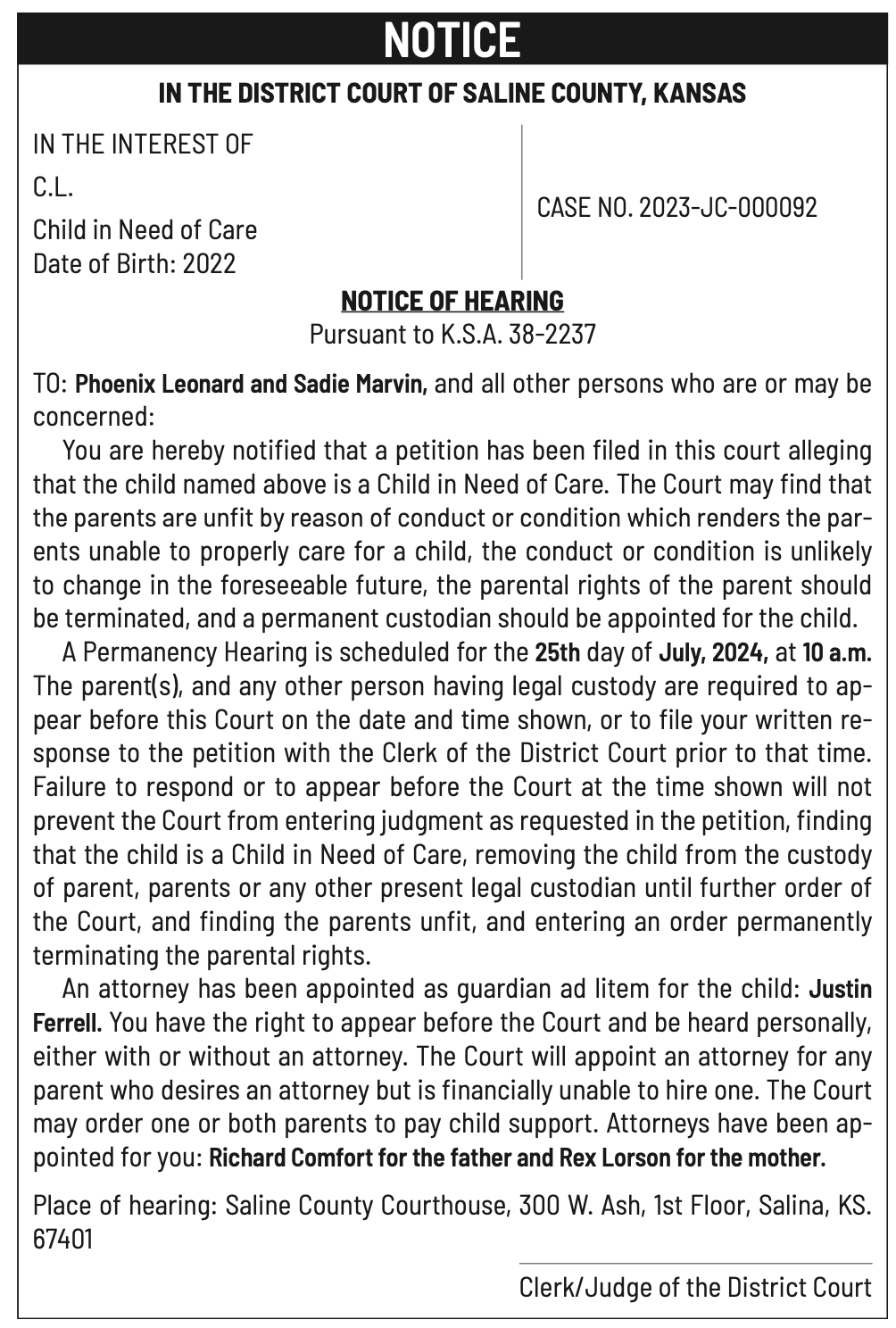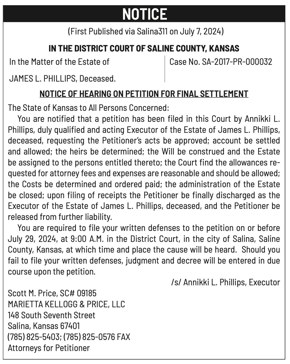 Public notices published in the Salina311 newspaper on July 17 and July 21.π‘This story was featured in the Salina311 Newspaper. Subscribe To The Paper