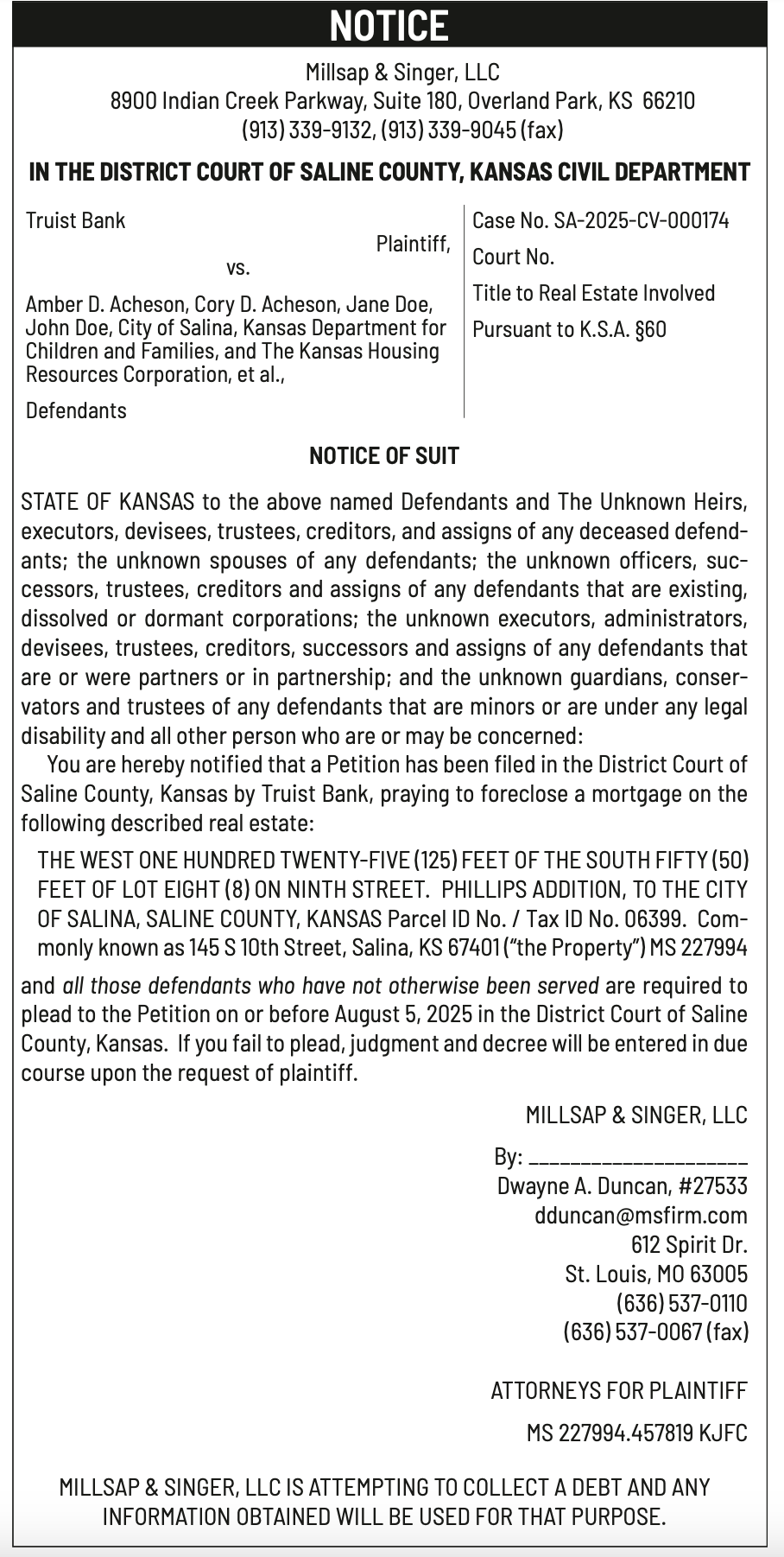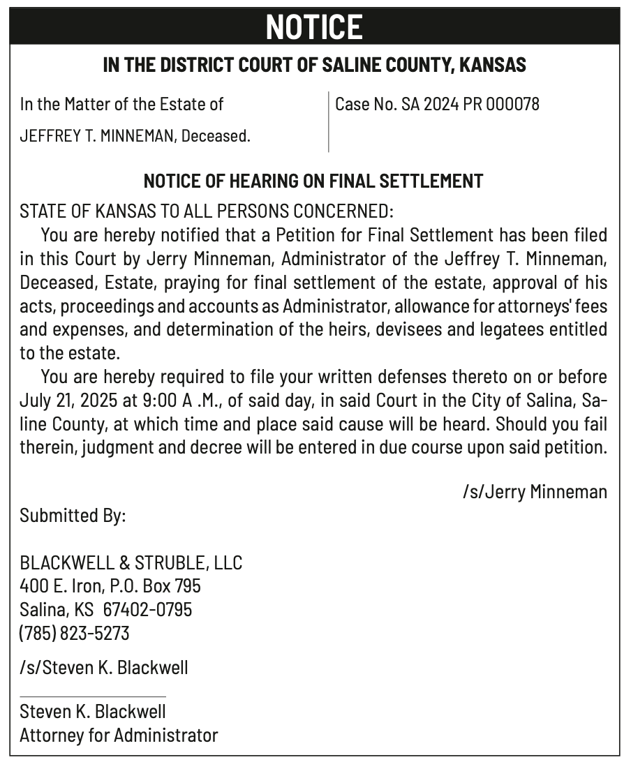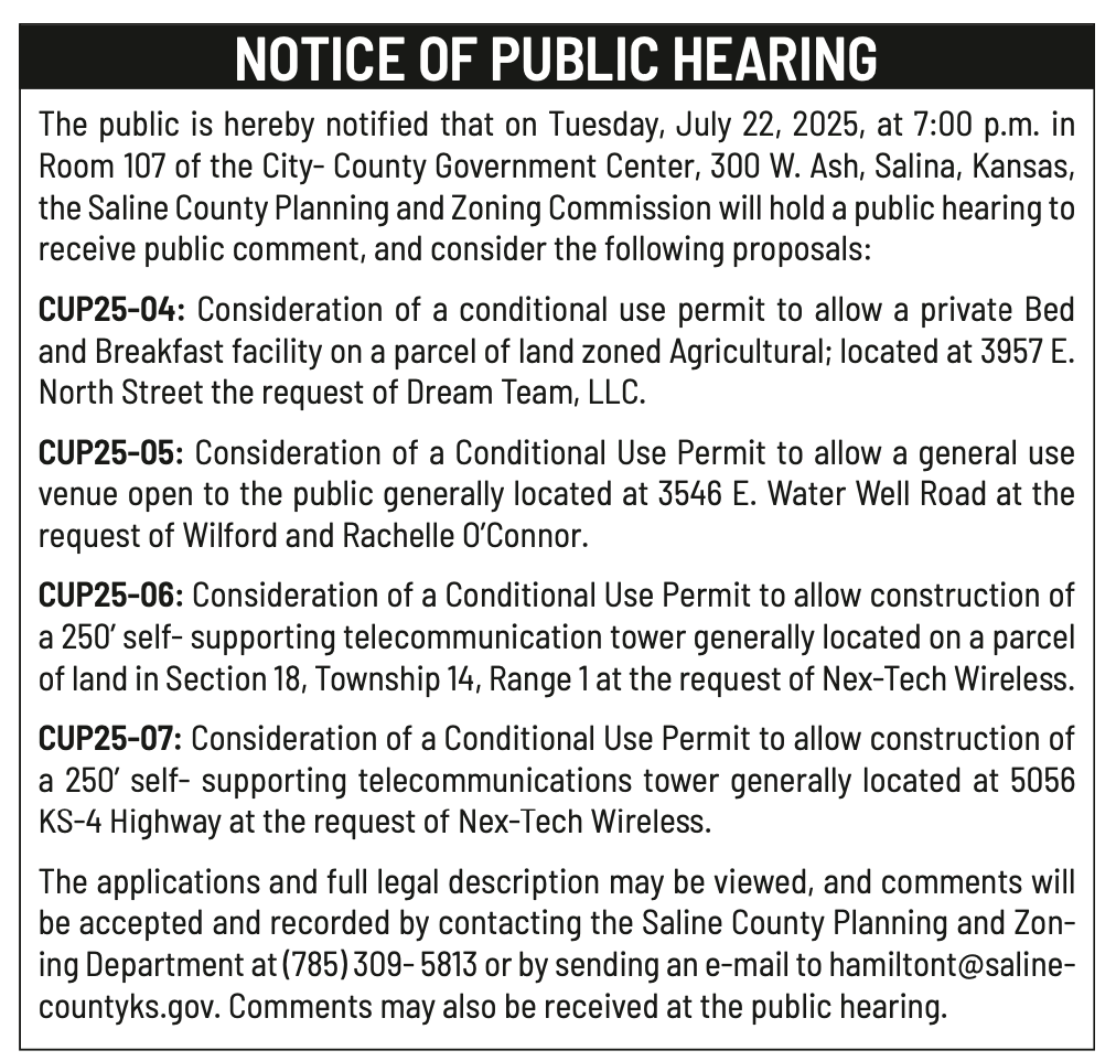 Public notices published in the Salina311 Newspaper on July 6th and/or July 2nd.π‘This story was featured in the Salina311 Newspaper. Subscribe To The Paper