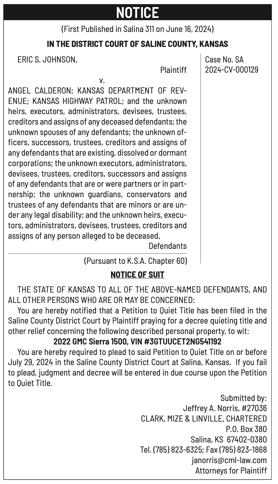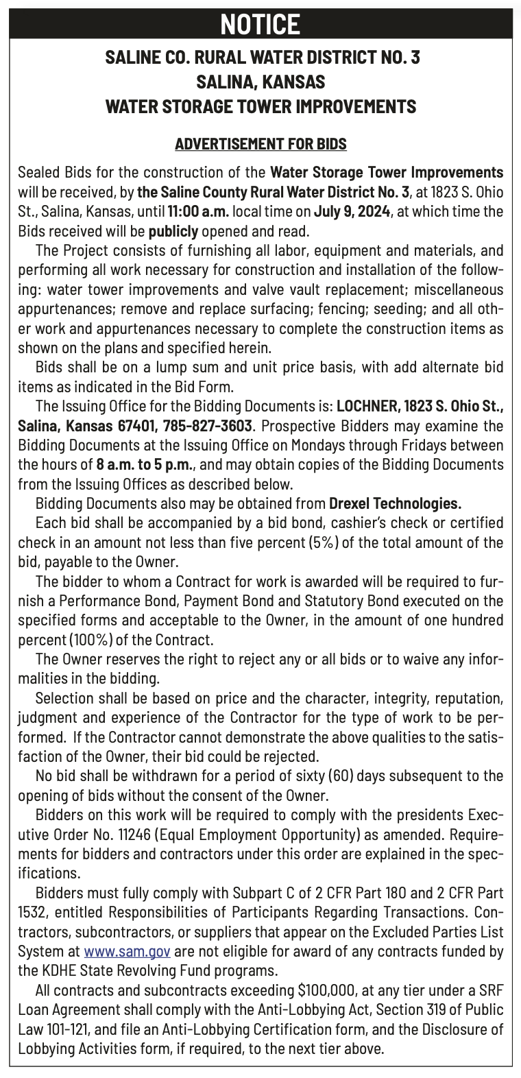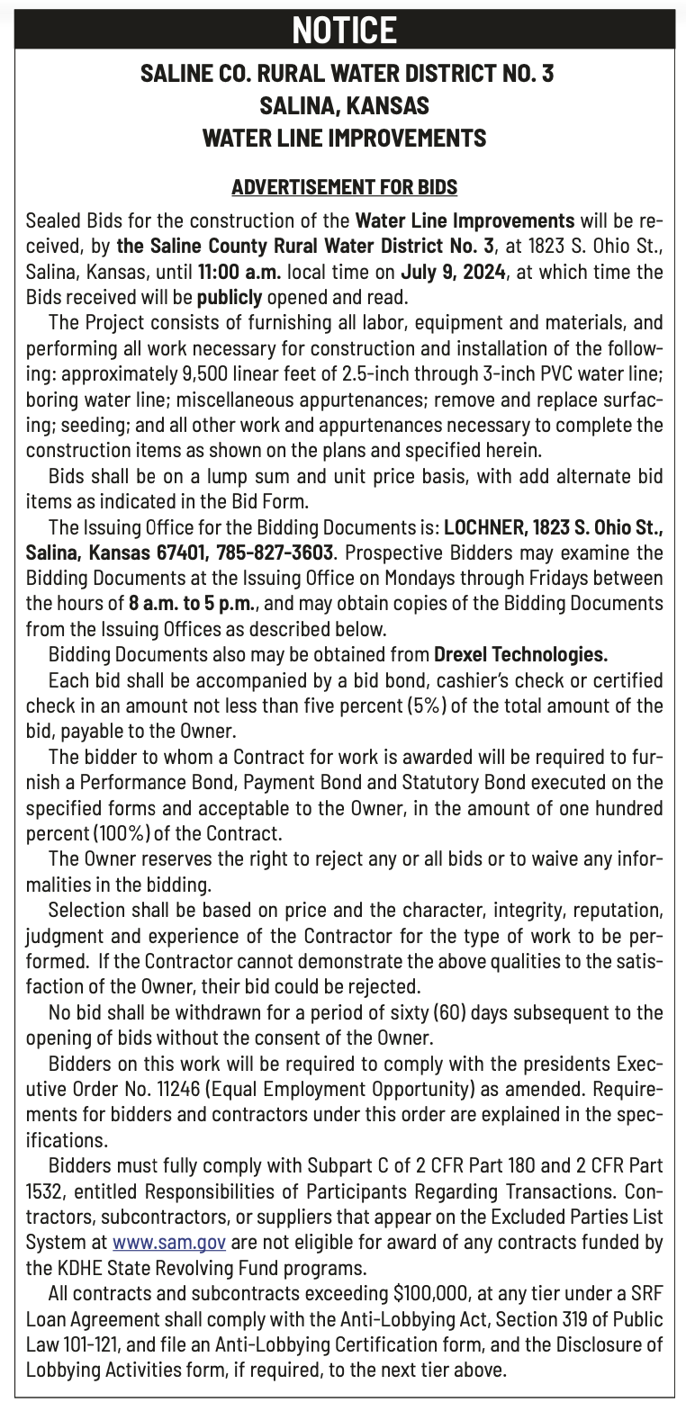 Public Notices published in the Salina311 Newspaper on June 12th and June 16th.π‘This story was featured in the Salina311 Newspaper. Subscribe To The Paper