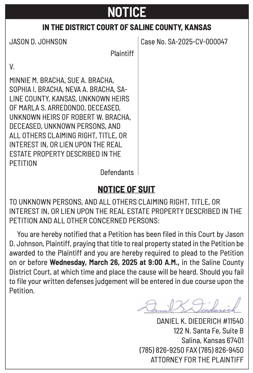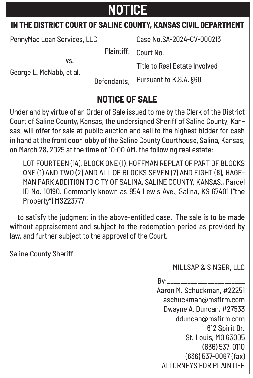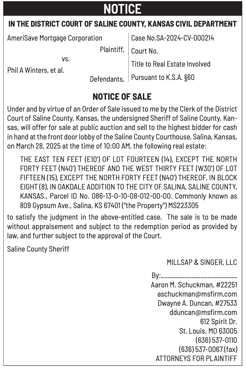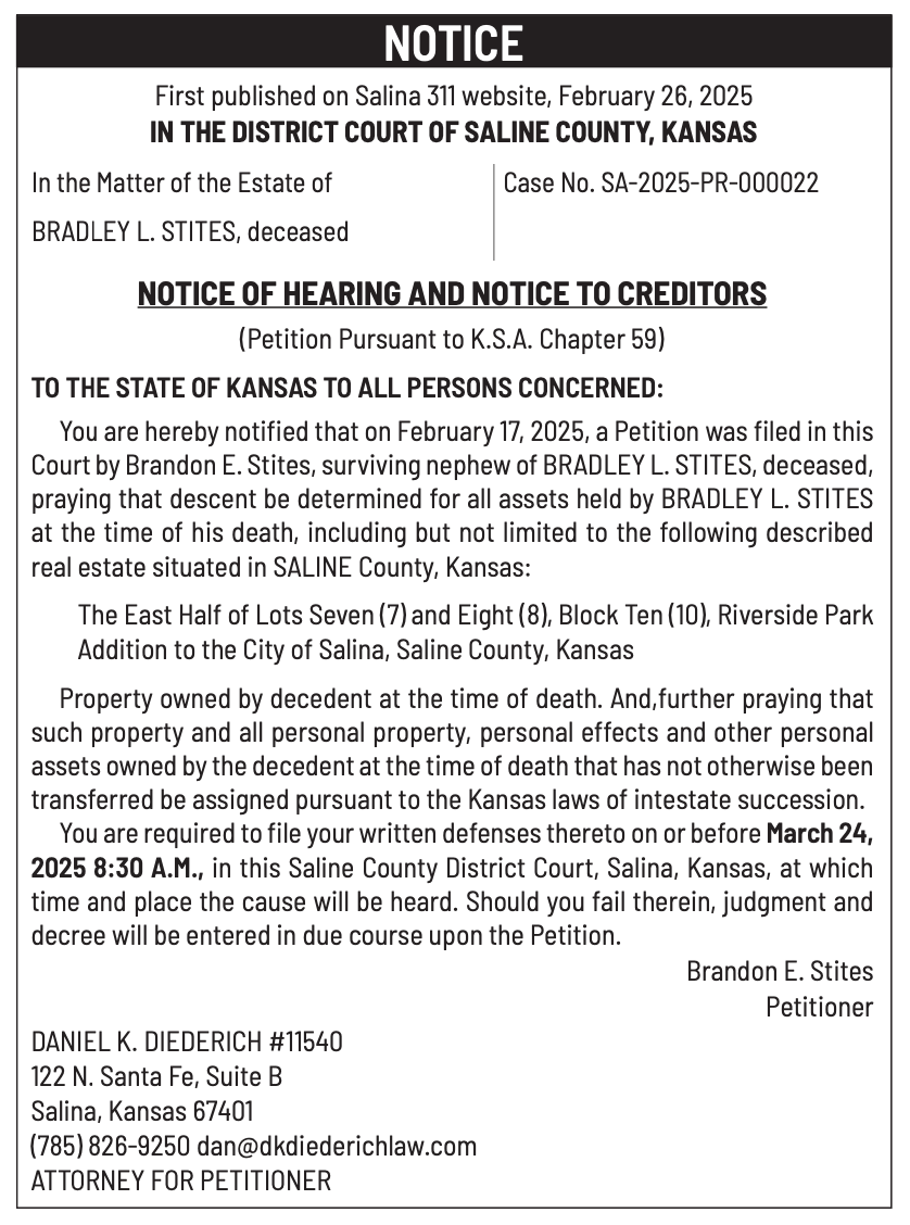 Public notices published in the Salina311 Newspaper on March 16th and/or March 12th.