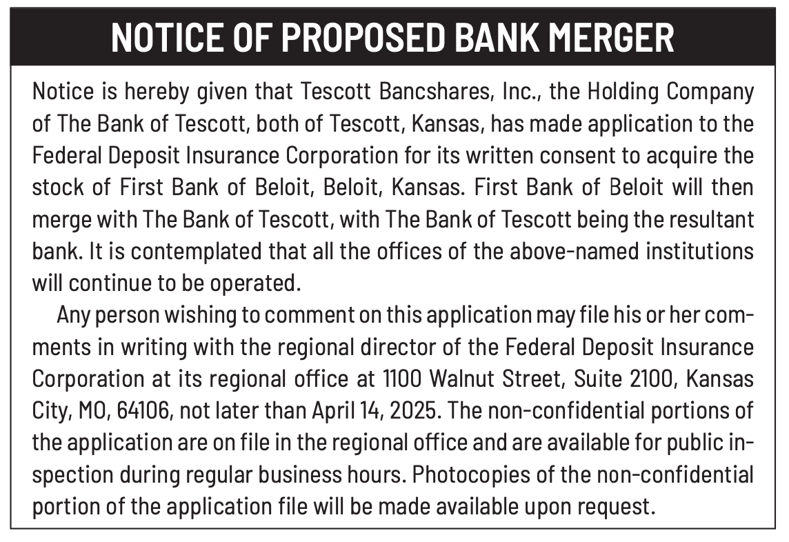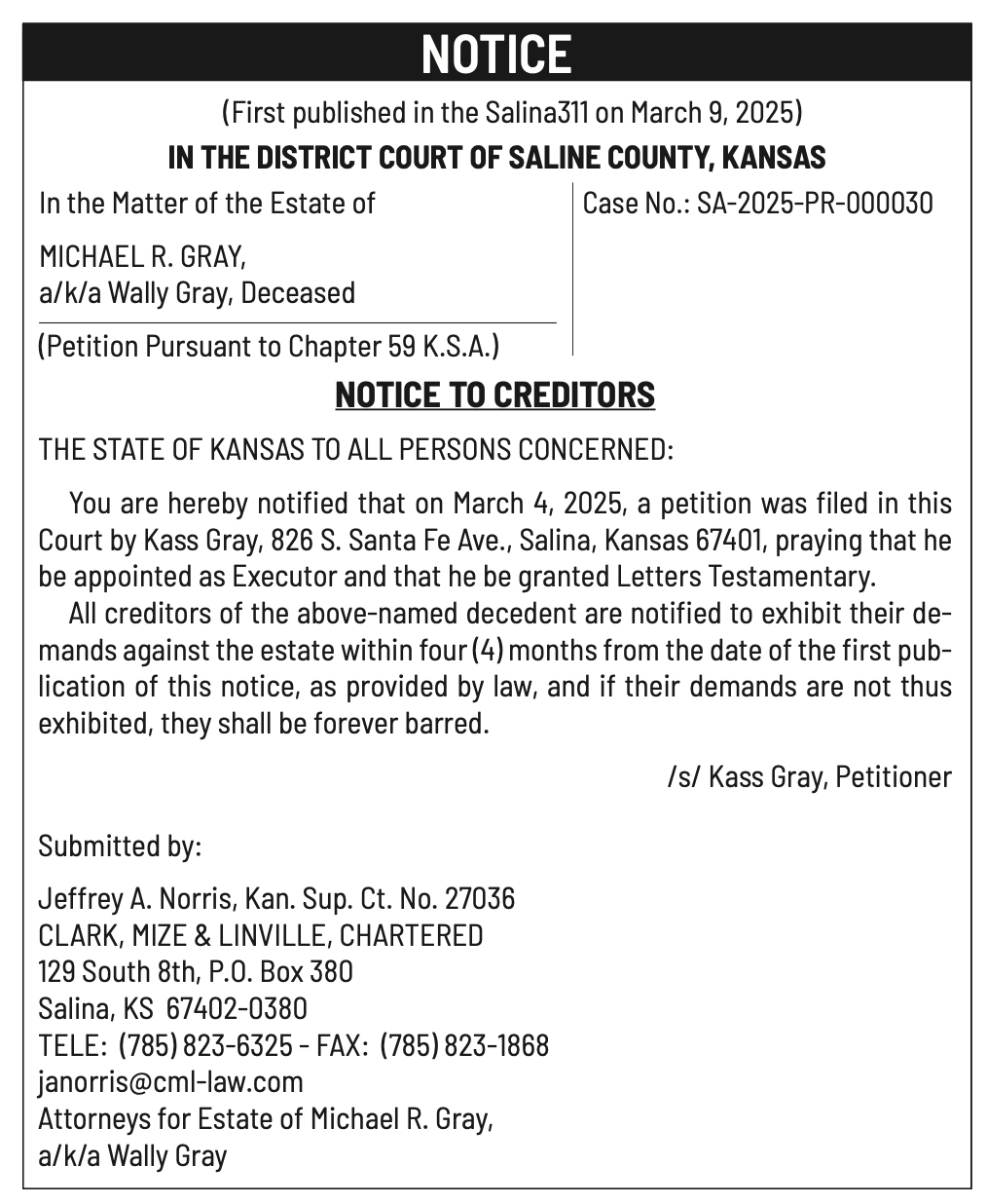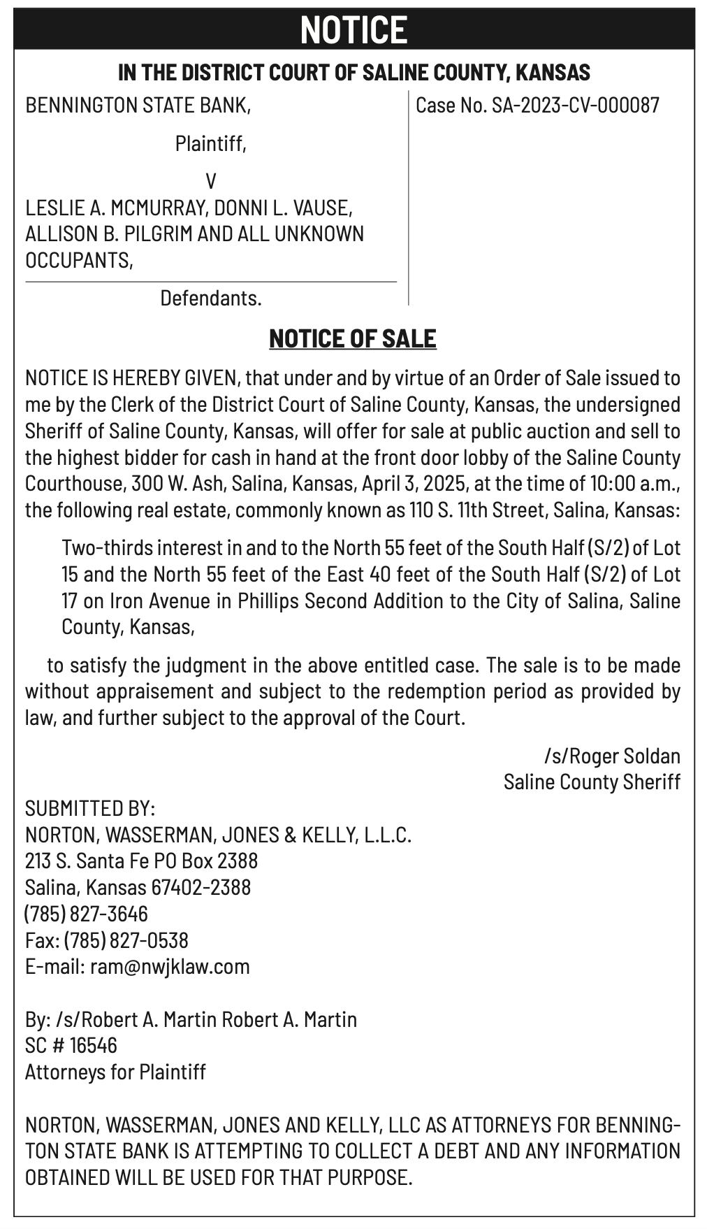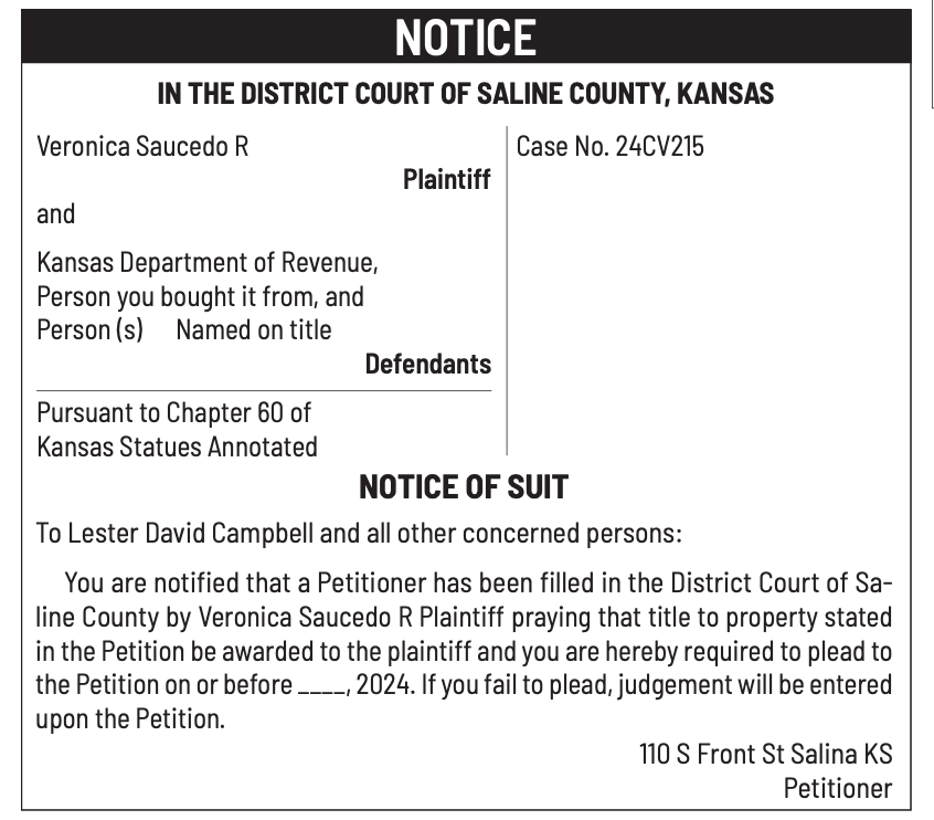Public notices published in the Salina311 Newspaper on March 16th and/or March 12th.