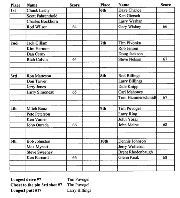 Salina Municipal Golf Course Thursday Morning Seniors Results