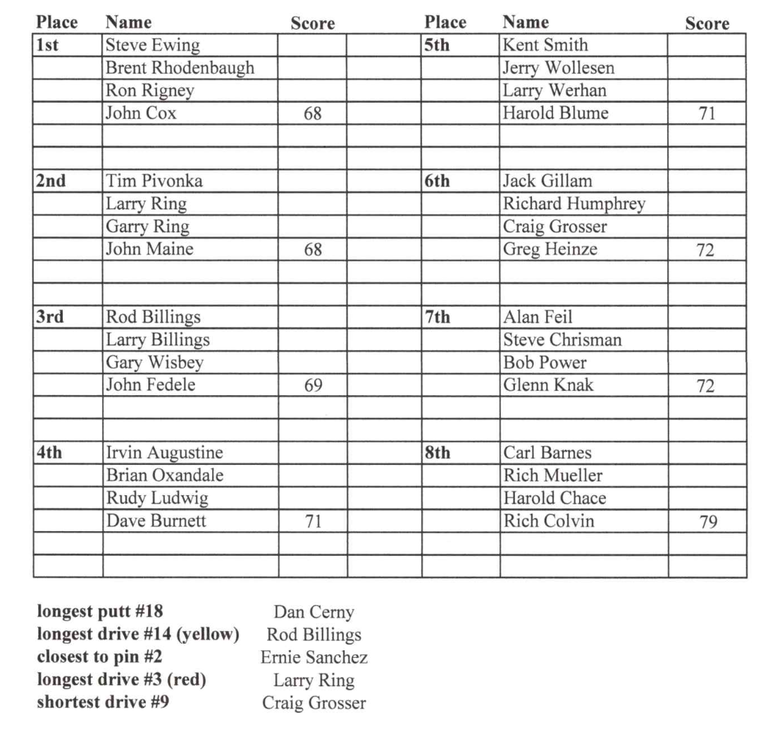 Salina Municipal Golf Course Thursday Morning Seniors Results - July 10
