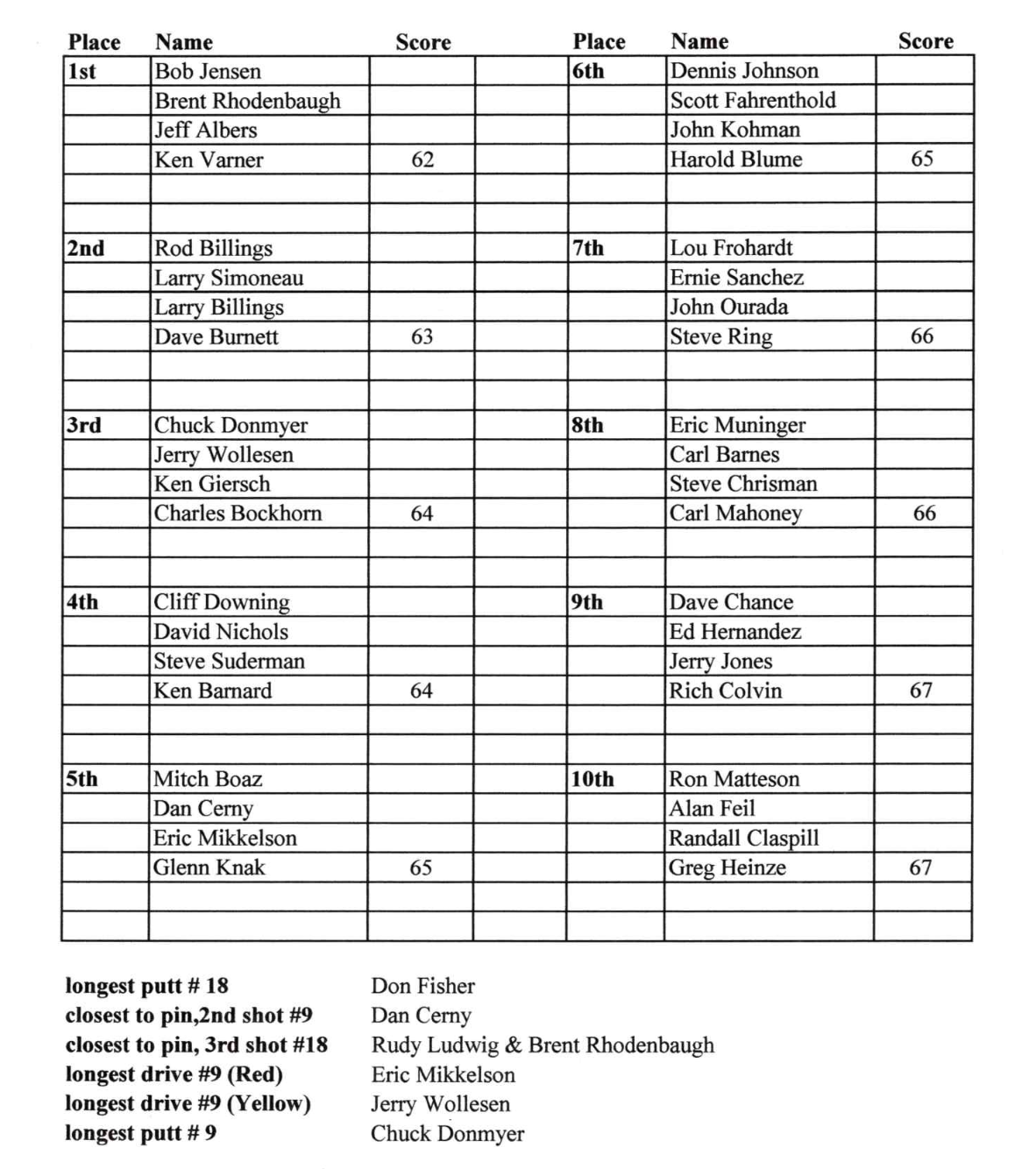 Salina Municipal Golf Course Thursday Morning Seniors Results - Oct 2, 2025