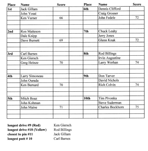 Golf Salina Municipal Golf Course Thursday Morning Seniors Results - November 6 public – 1 min read Salina Municipal Golf Course – par 70 Scramble format – 58 players… Nov 8, 2025 George