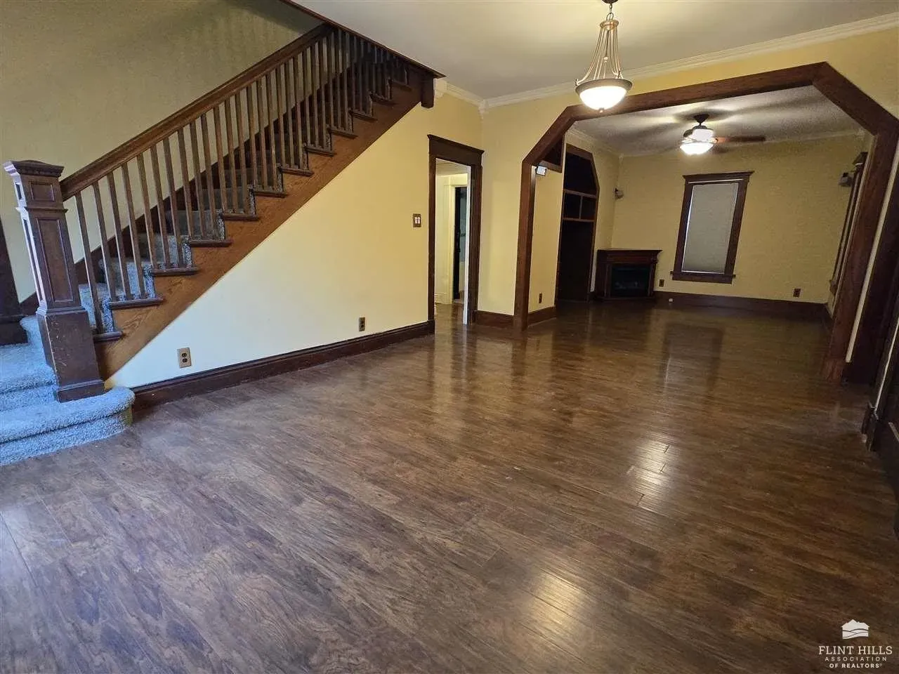• Historic touches including original woodwork and pocket door